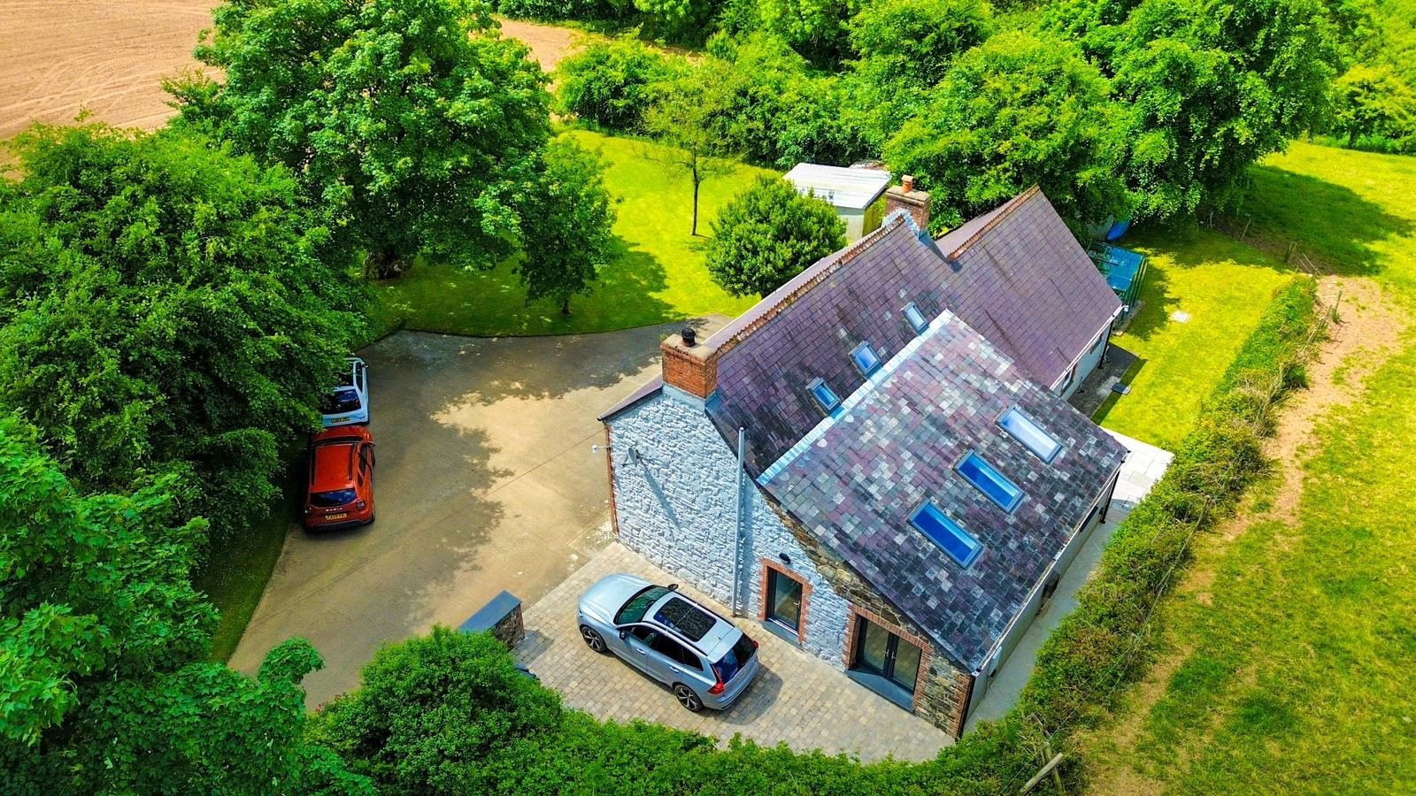 The property boasts just under an acre of peaceful land, surrounded by farmland and distant woodland. The road from the carriageway to the driveway is owned by the property and maintained well accordingly. In addition, there is a large concrete driveway suitable for multiple vehicles. There are also external LED lights around the exterior of the property, as well as three external power sockets and two garden taps.