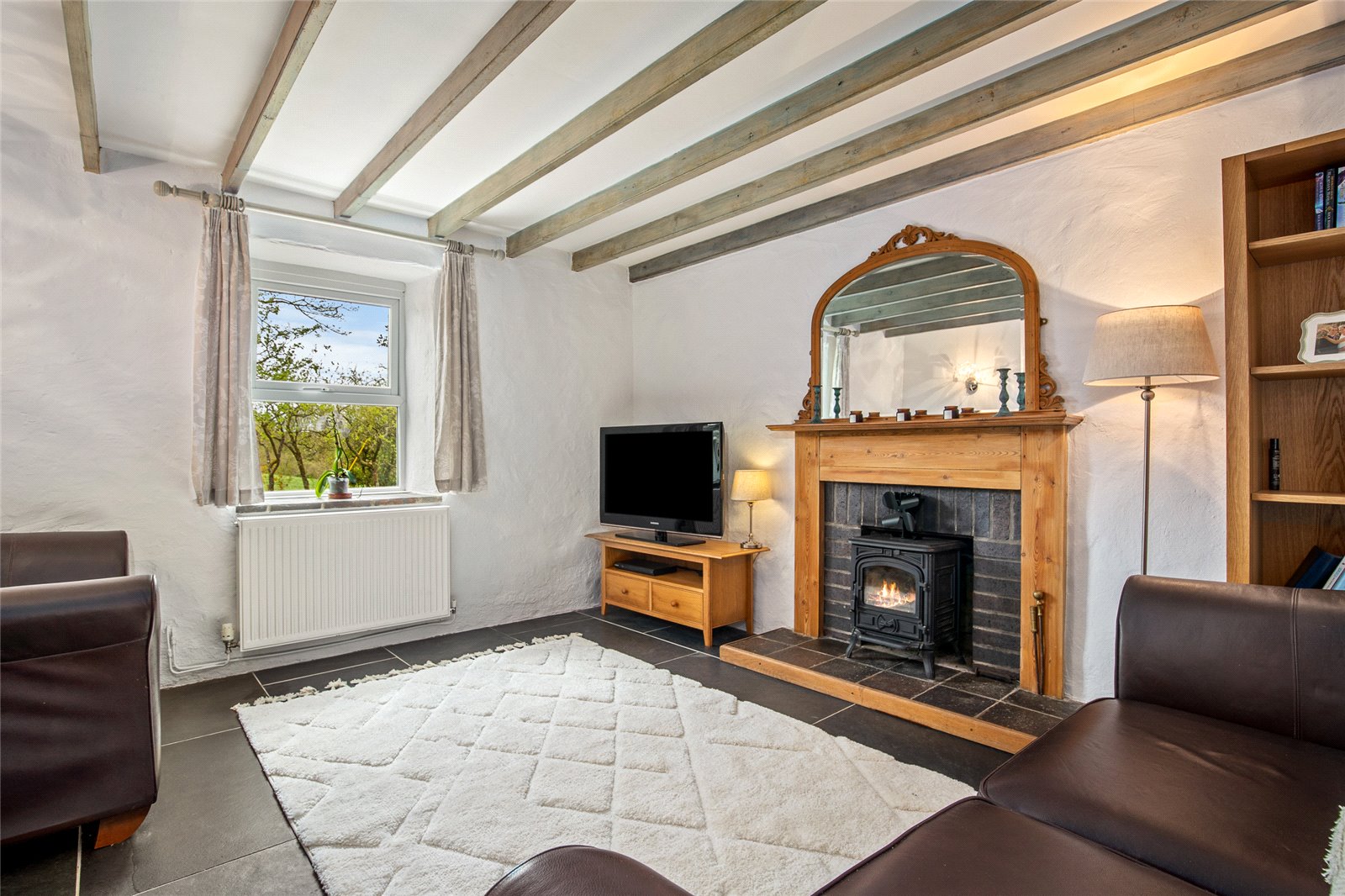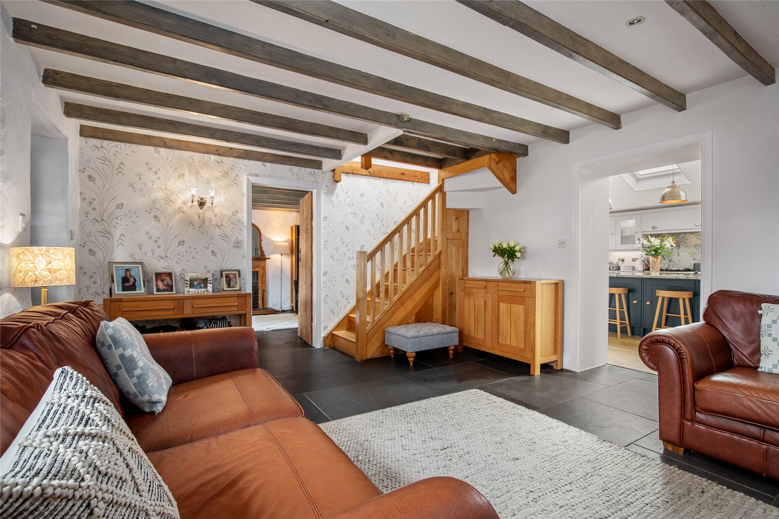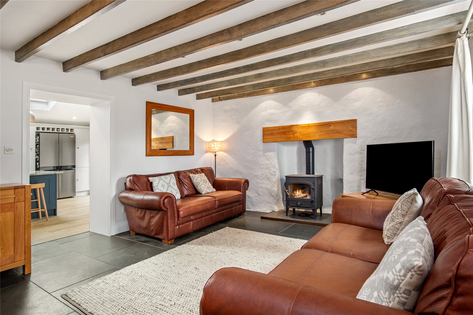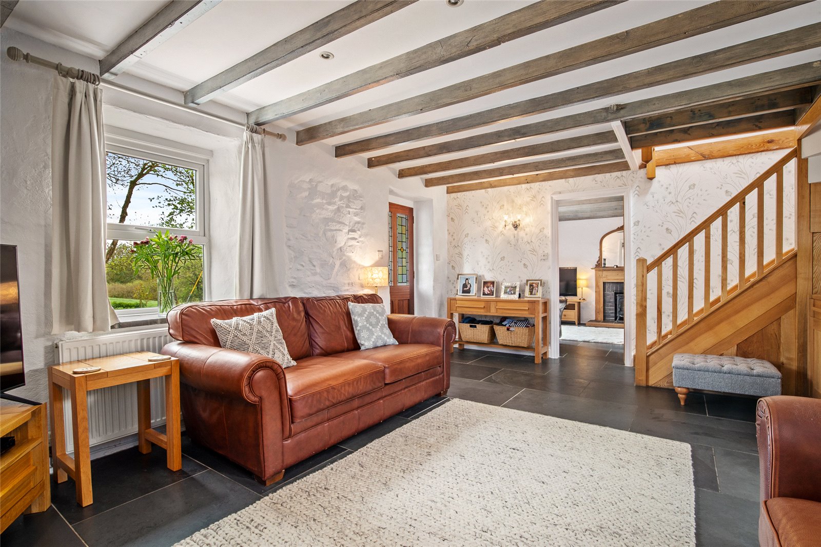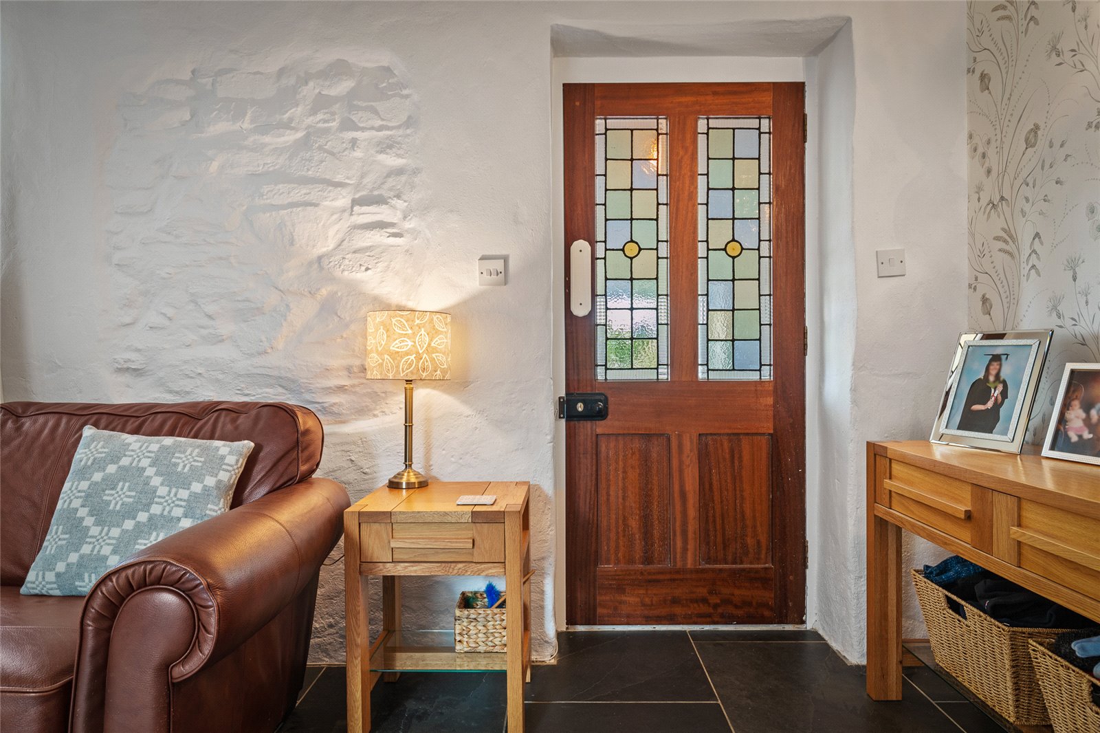 The room briefly comprises of slate flooring, uPVC double-glazed window giving views over the front of the property, naturally rendered stone wall, exposed beams to the ceiling with wall lighting and radiator.