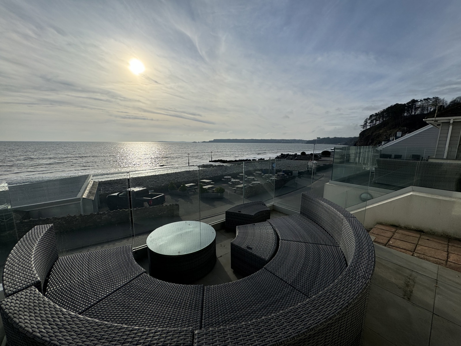 Outside, there is the lawn to the rear with levelled garden, patio area with garden furniture. The front of the house has a glass balcony with plenty of outdoor furniture and beautiful sea views to enjoy a glass of wine in the evening.