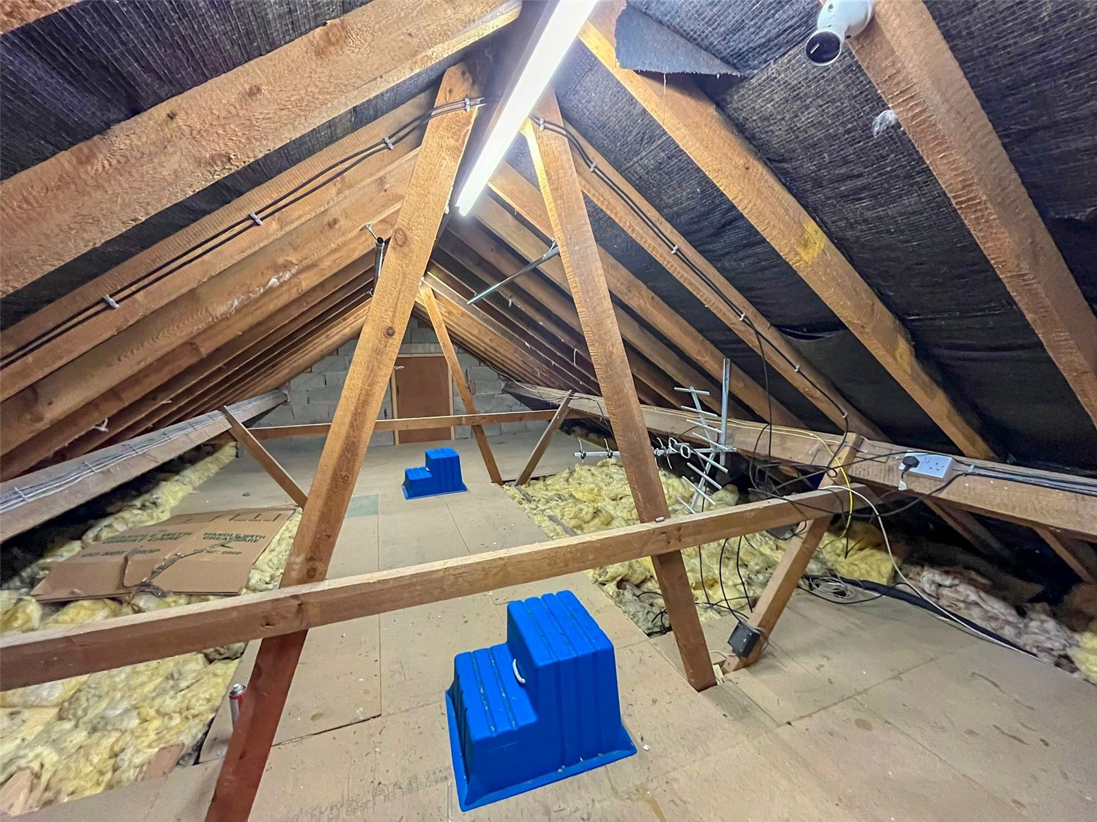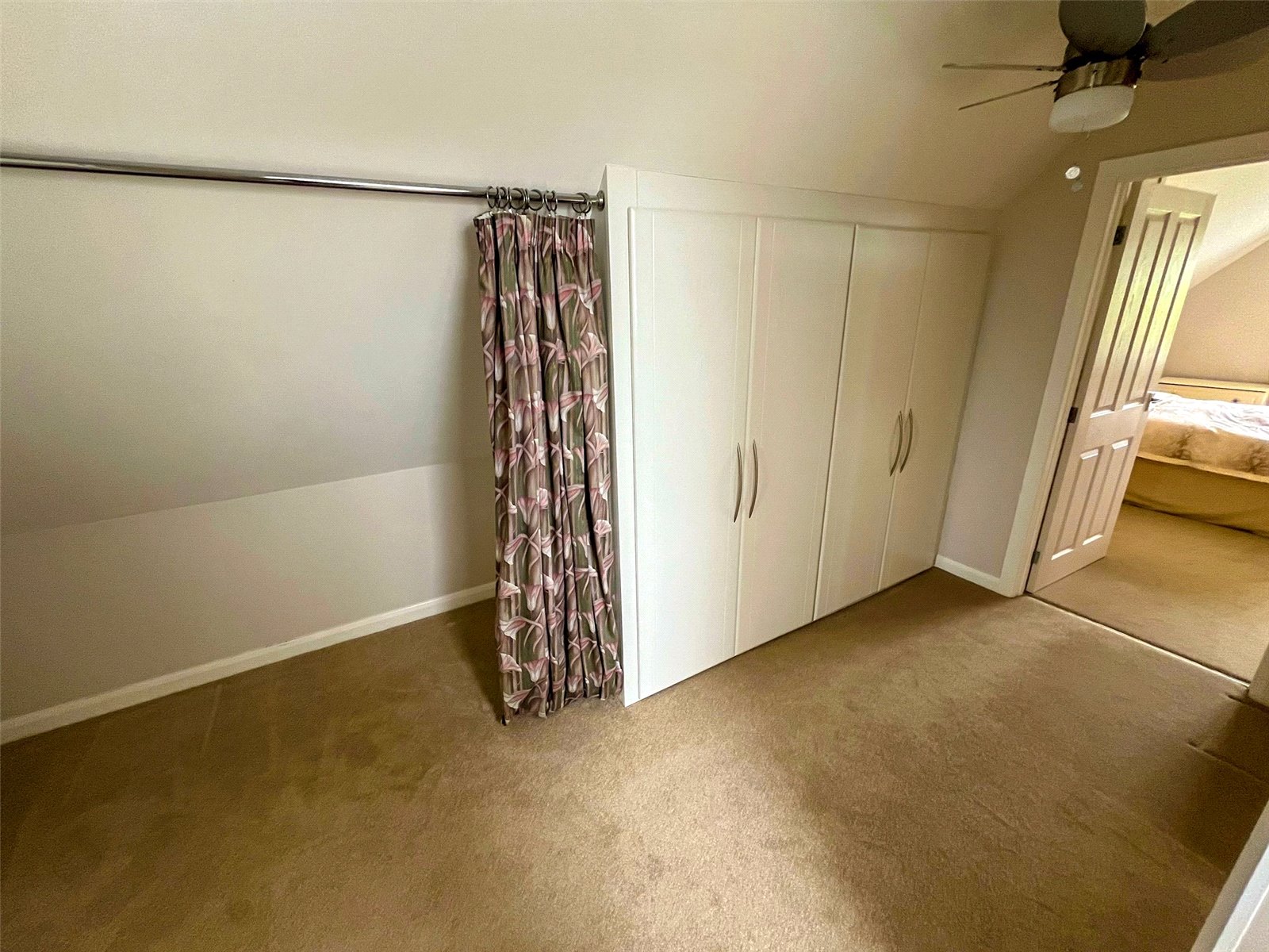 Carpeted floor, radiator, UPVC double glazed window, soothing light, built-in cupboard space, access through door to large attic room.