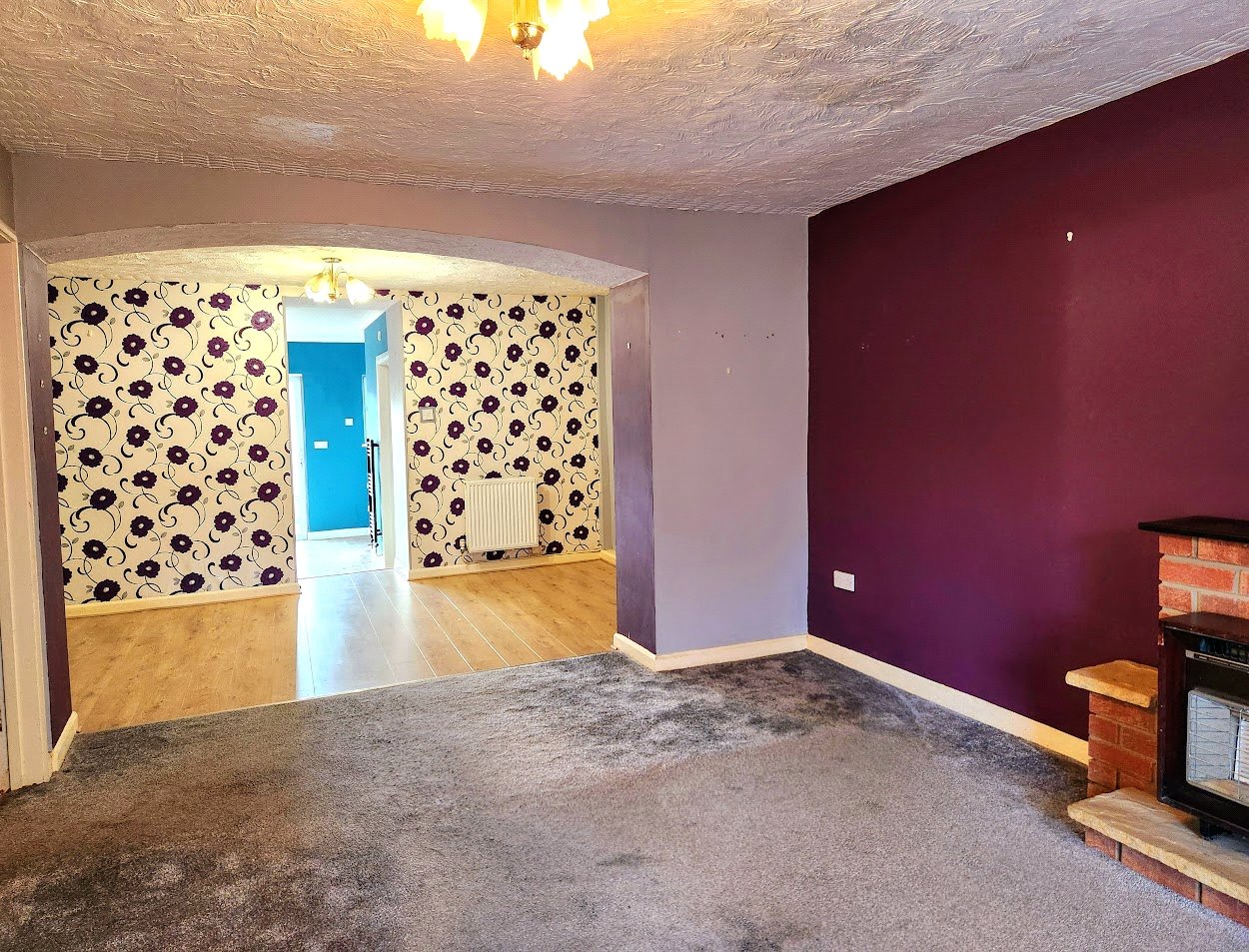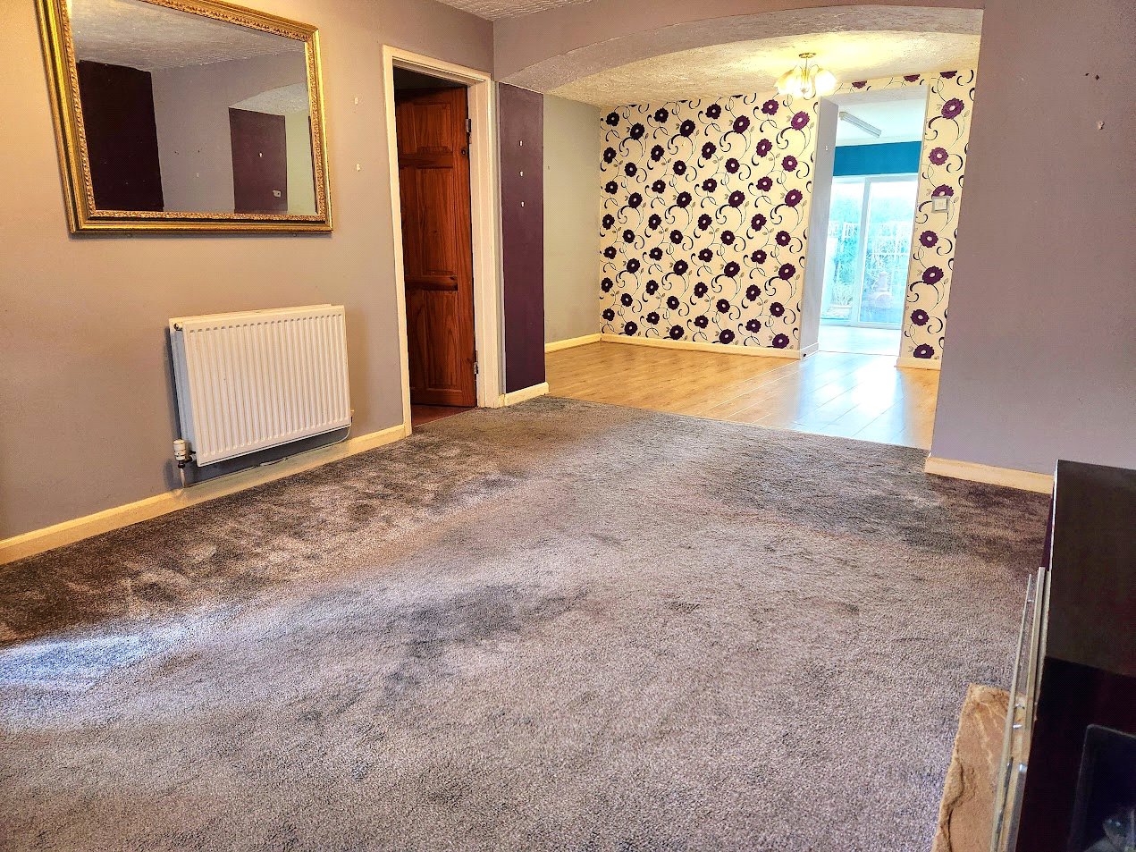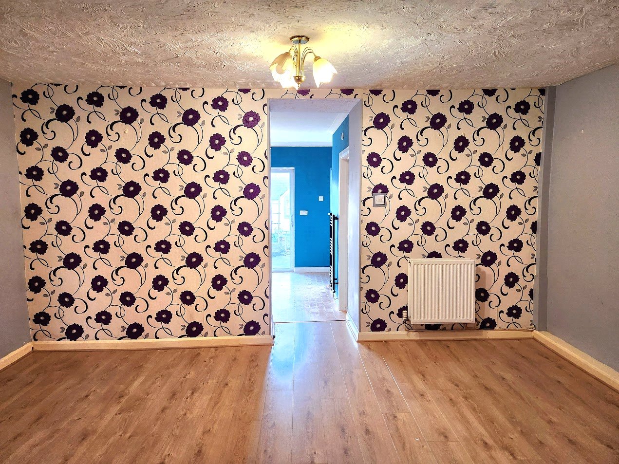 Dining Room, comprising of laminate wood flooring, light fittings, radiator and access to;