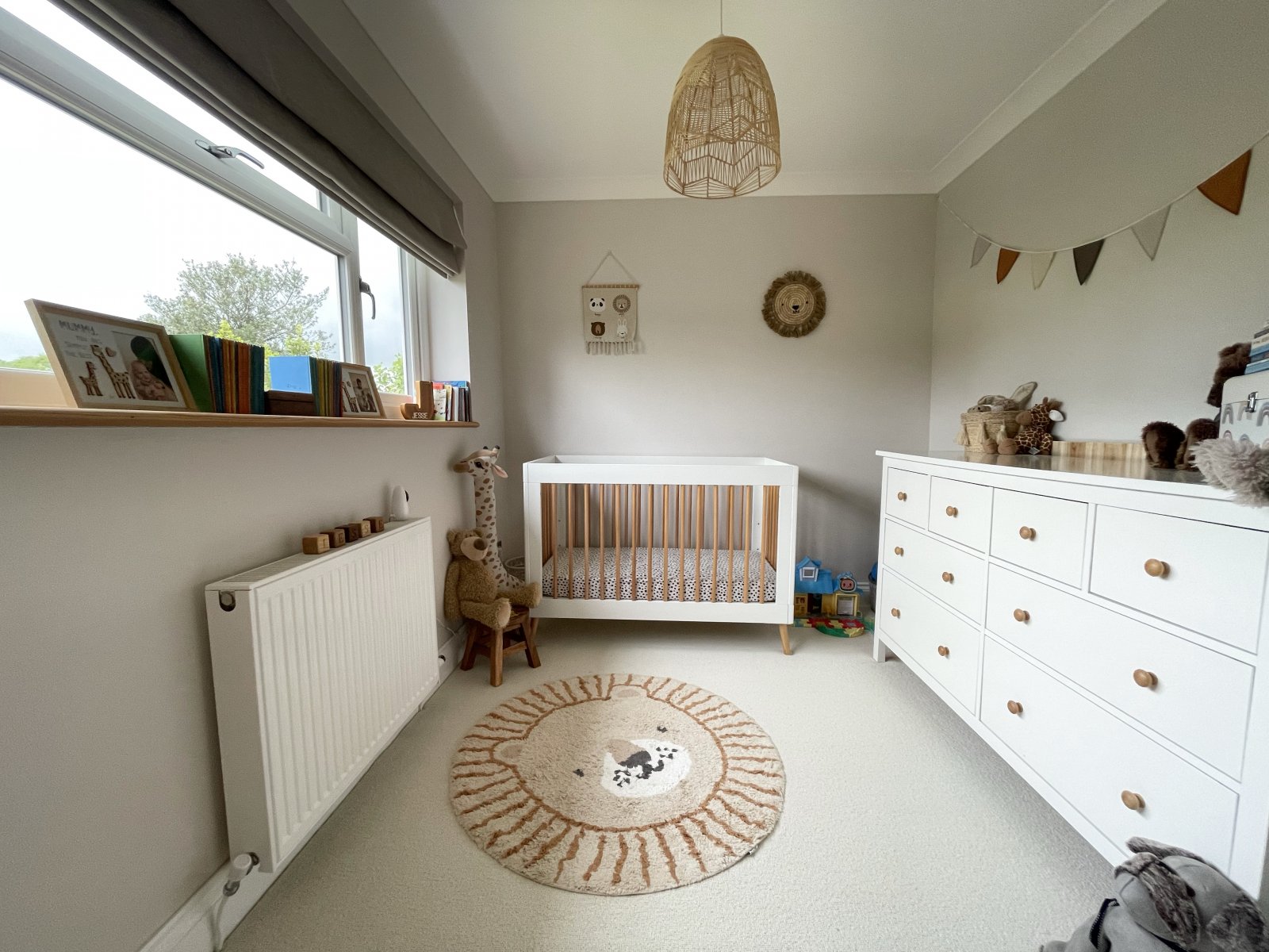 Carpet flooring, loft access, storage cupboard.