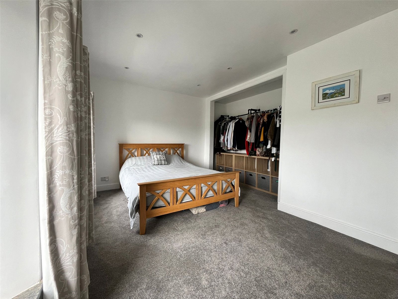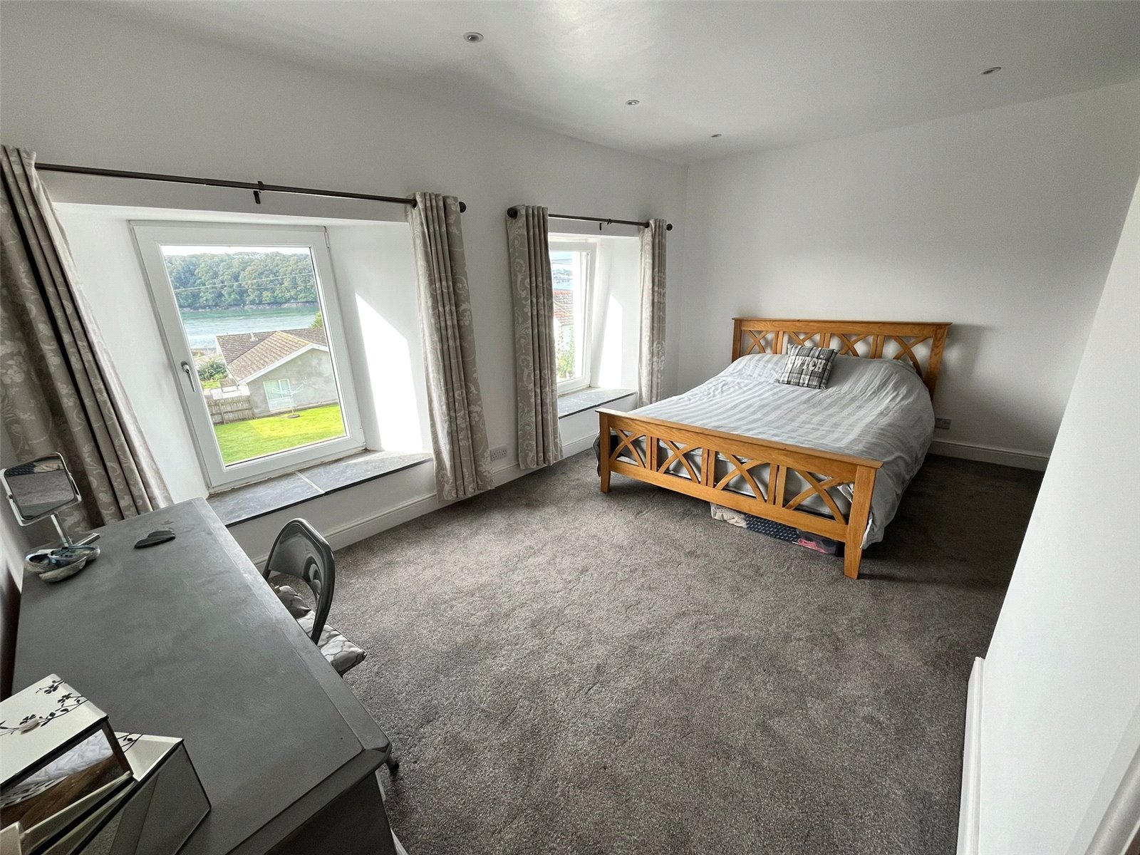 Two uPVC double glazed window to the fore with expansive coastal views, carpet flooring, recessed storage cupboard, spot lighting, USB plug sockets either side of the bed, loft access.
