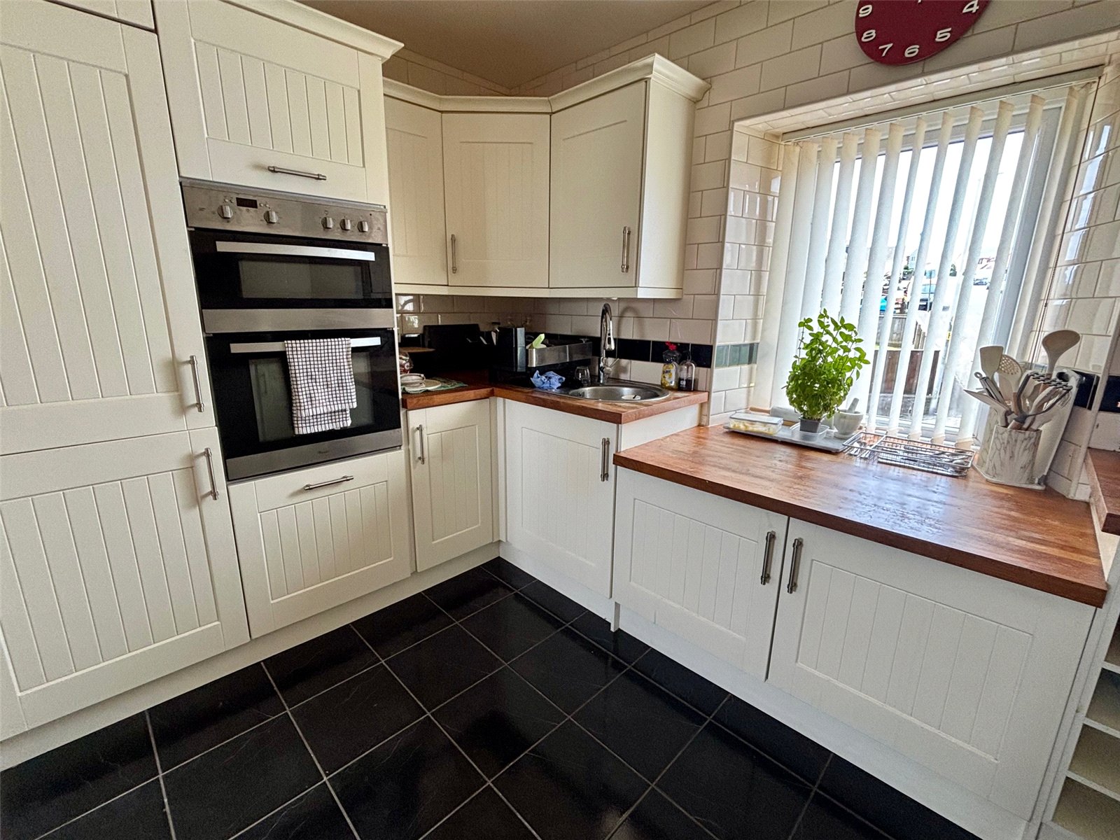 Upstairs, the main living accommodation showcases a spacious and light-filled lounge with dual-aspect windows offering uninterrupted views of the Marina and waterfront—making this an inviting space both during the day and at night, when the town lights twinkle in the distance. Adjacent to the lounge is a second bathroom with WC and wash hand basin for added convenience. The heart of the home is the kitchen/dining area, which has been designed with social living in mind. The kitchen features a range of wall and base units with oak-effect worktops, a stainless steel sink, integrated fridge/freezer, electric hob, overhead extractor, and built-in eye-level oven and grill—all of which are included in the sale. The open-plan design flows naturally into a generous dining area that easily accommodates a large table and is bathed in natural light, making it a perfect setting for family meals or entertaining guests.
