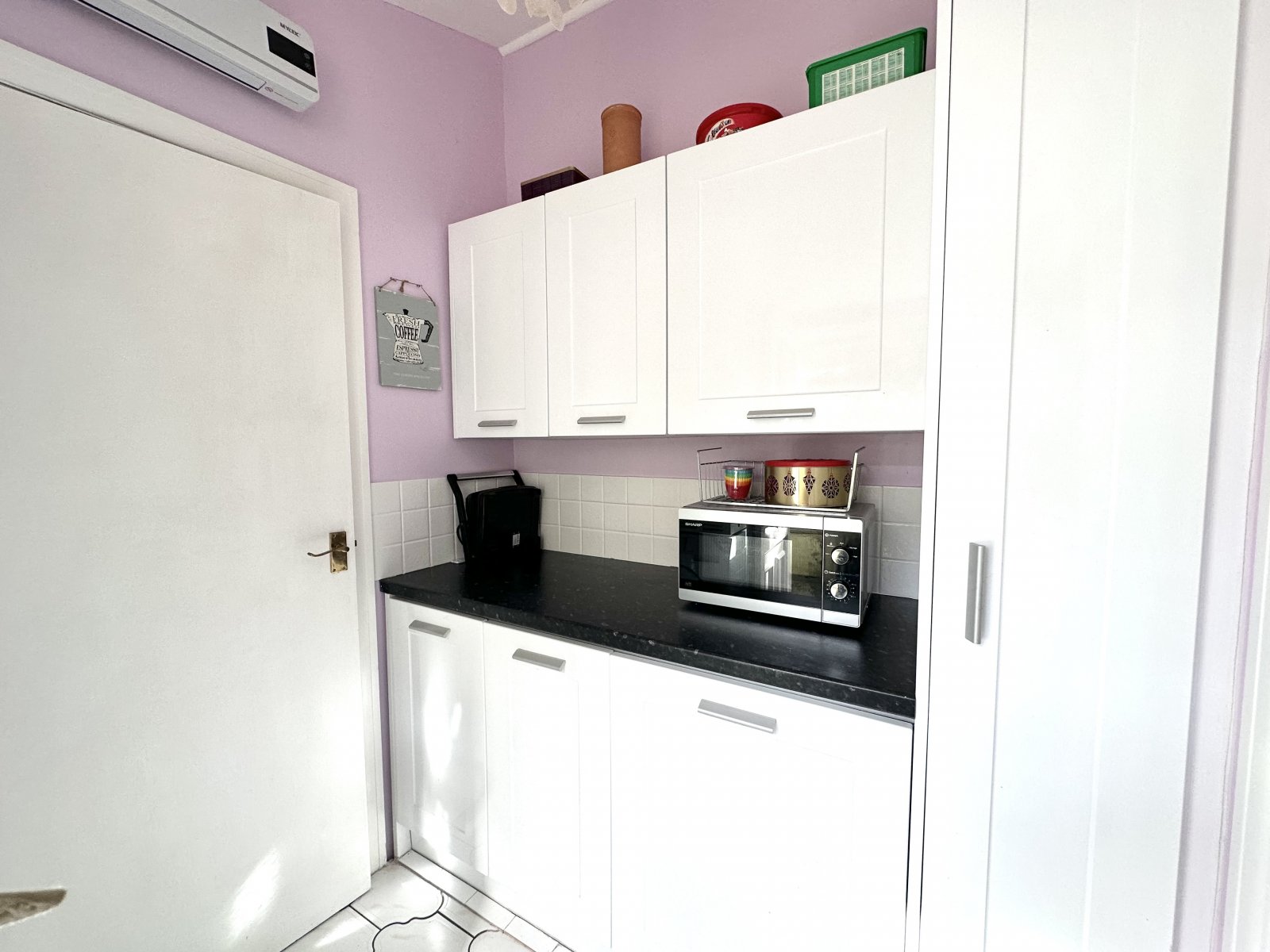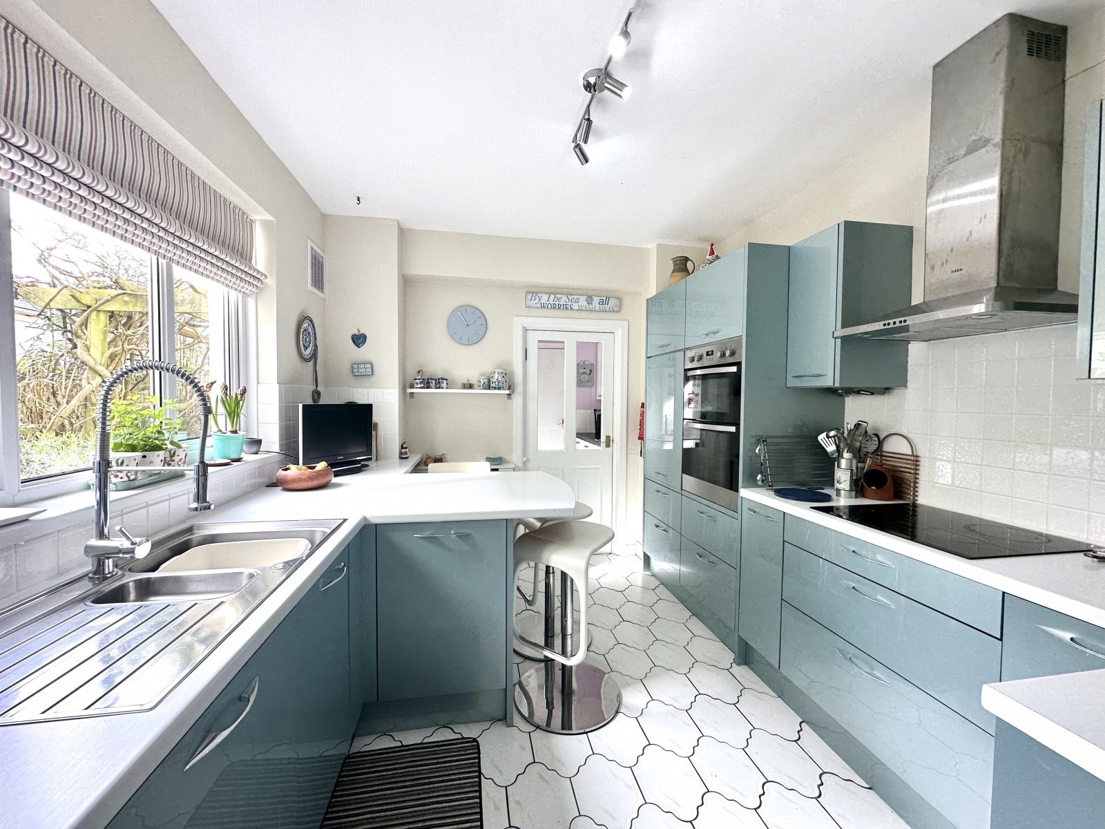 Tiled flooring, tiled walls, ceiling lights, radiator, built in kitchen units, wash hand basin, cooker/hob, over head fan, integral dishwasher, fridge freezer.