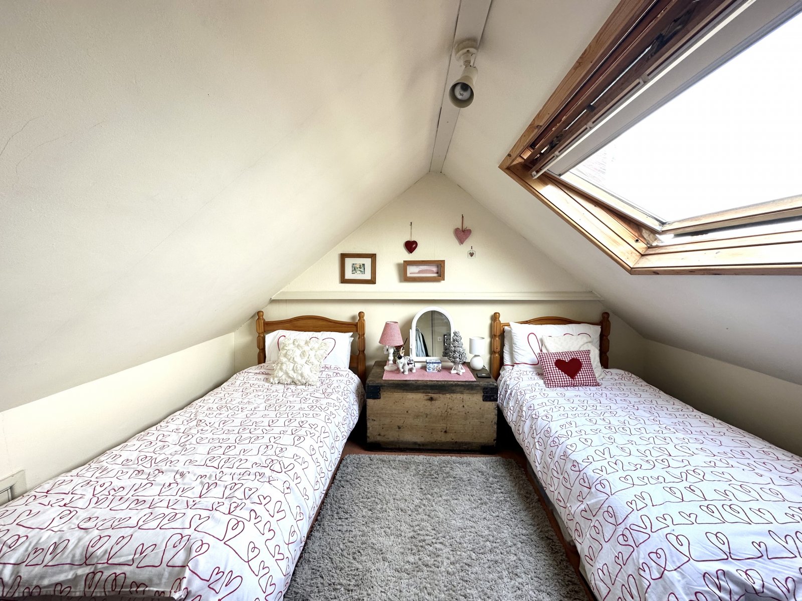 Attic conversion, carpet flooring, ceiling light, skylight window to rear, alcove storage space