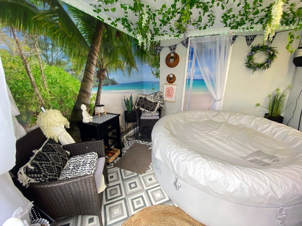 uPVC double glazed french doors, hot tub, lighting and electric.