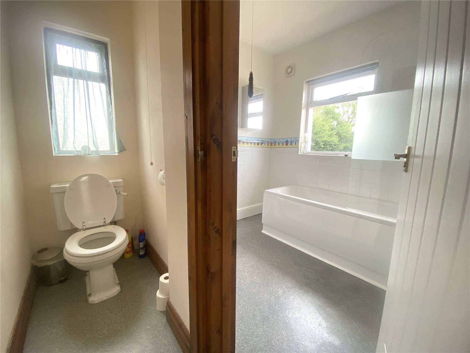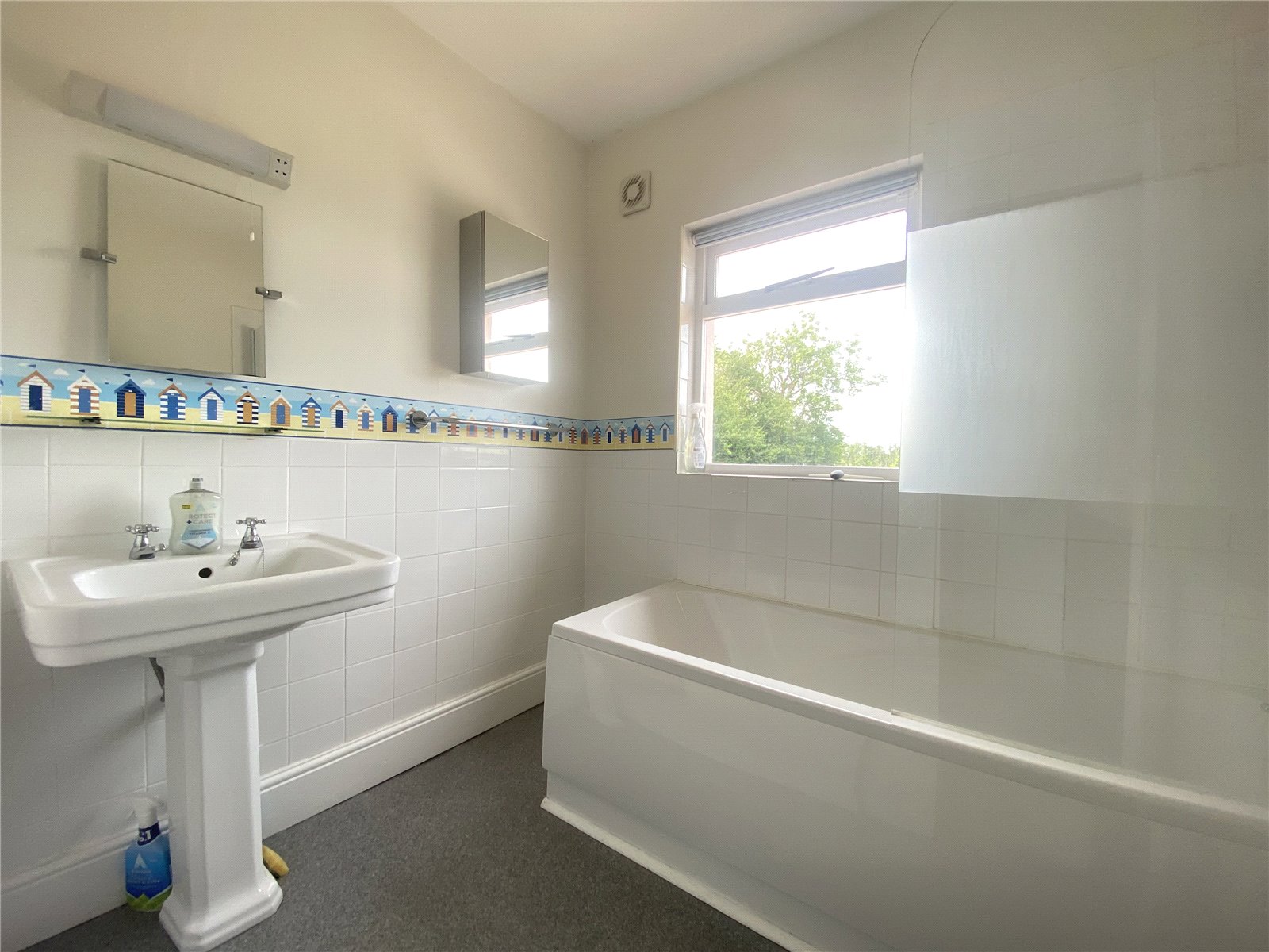 Laminate flooring, shower over bath, dual tap hand wash basin,1 x wall mounted radiator, central ceiling light, 2 x towel rails.