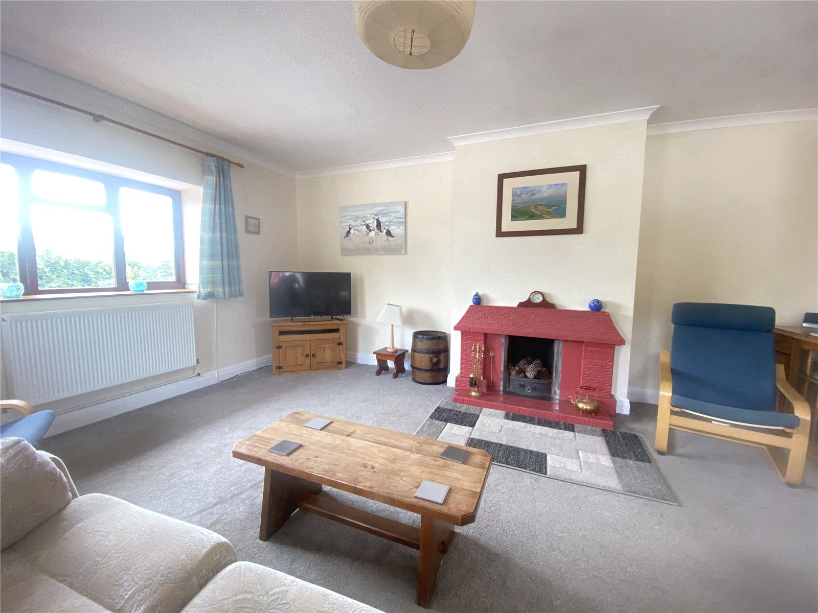 Carpet flooring, 3 x wooden framed double glazed windows, 2 x wall mounted radiator central ceiling light, open fire place.