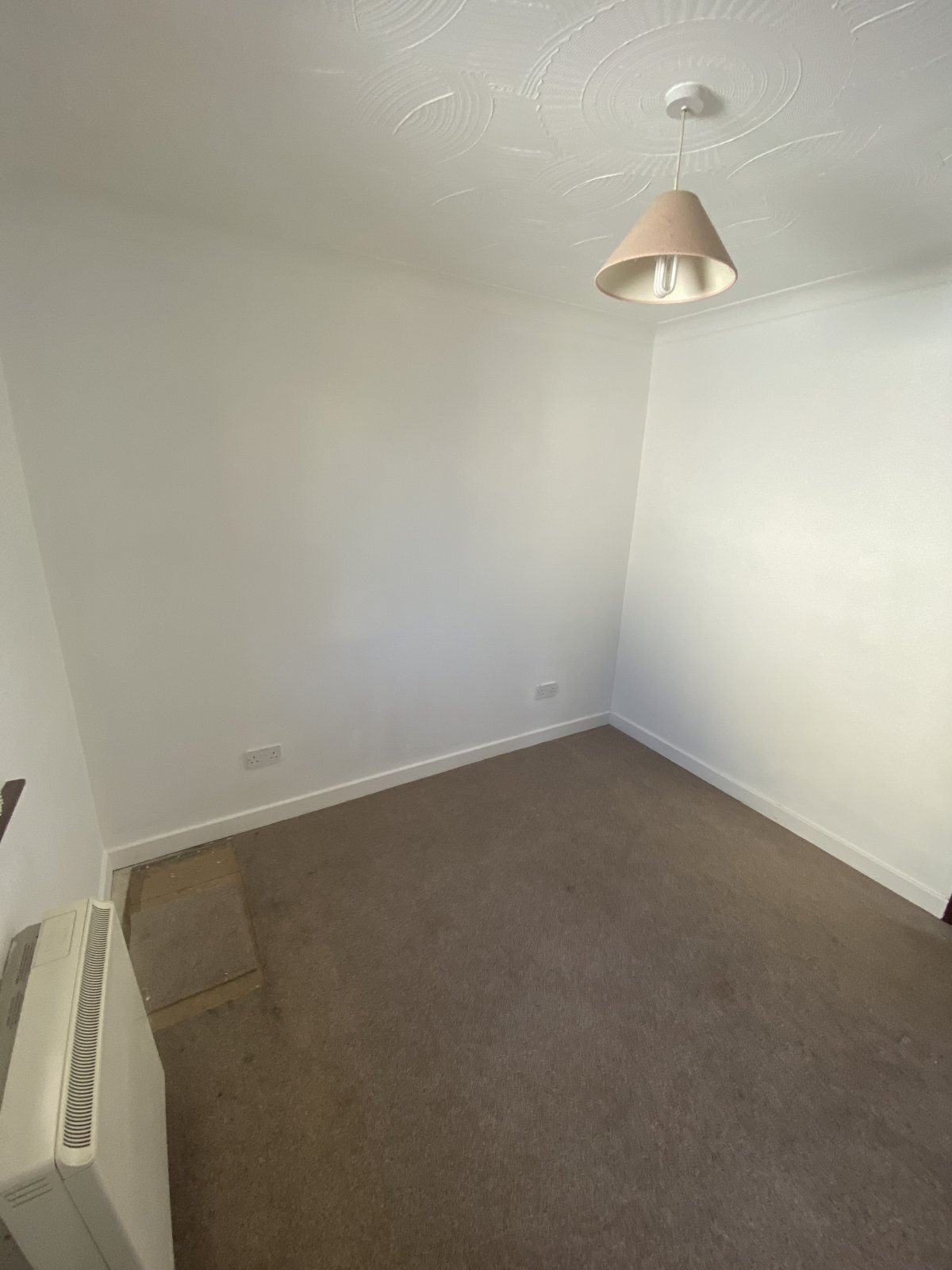 Overlooking the front, a double room with night storage heater, fitted carpet, light fitting.