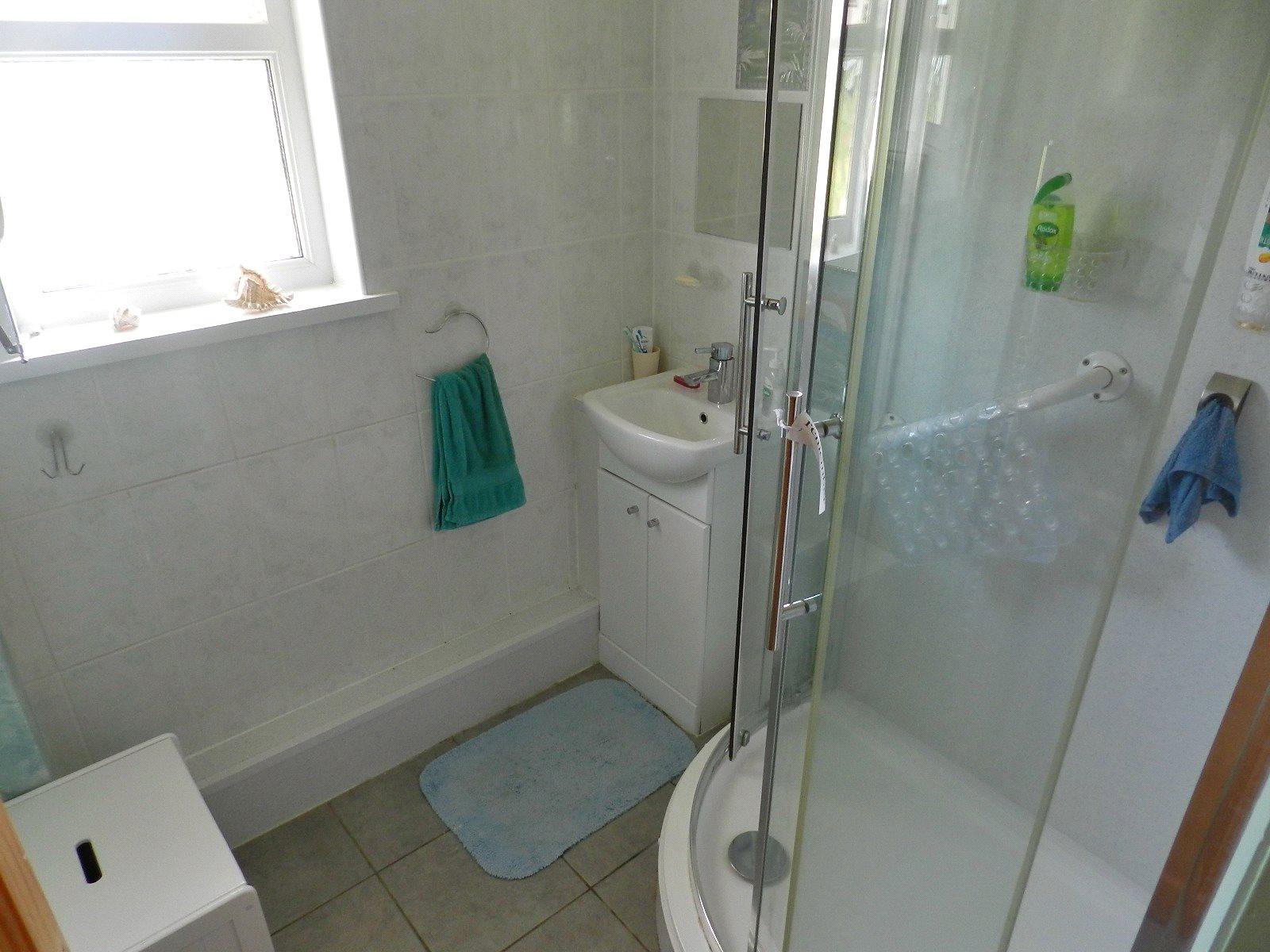 Tiled Flooring, Part Tiled Walls, Vanity Mirror, WC, Towel Rail Radiator, Wash Basin With Base Unit, Walk In Mains Shower, 1 x uPVC Double Glazed Frosted Glass Window To Rear