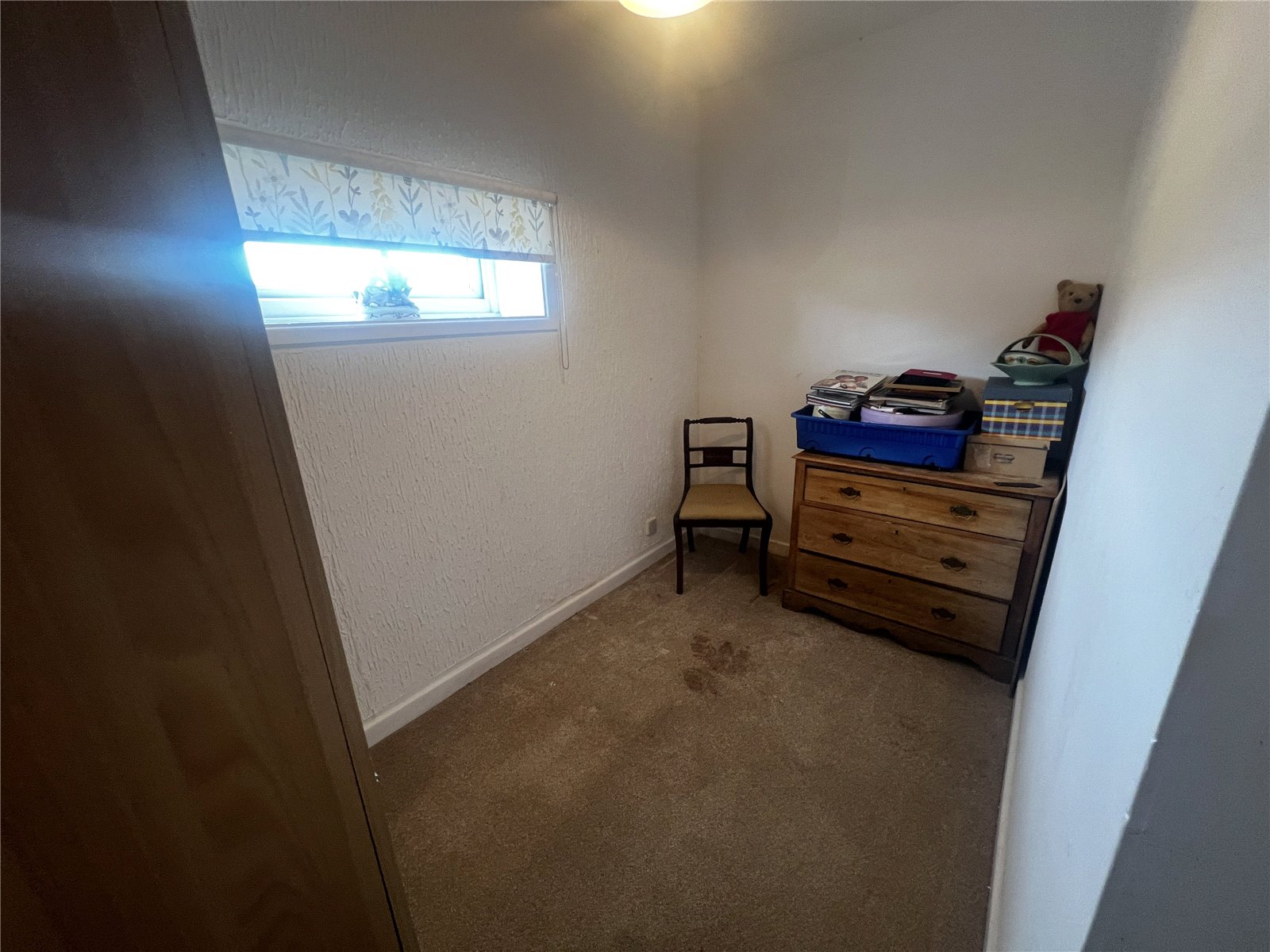 Carpeted bedroom with a double-glazed window.