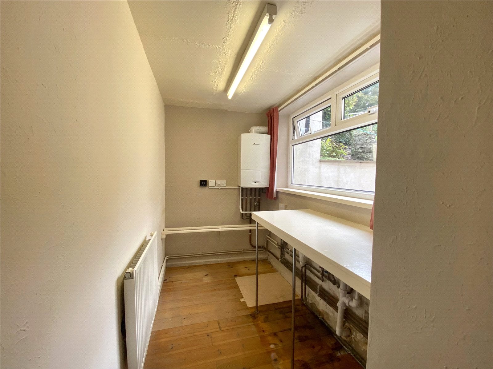 With wood flooring, lighting, radiator, worktop with washer/dryer connections beneath, uPVC double-glazed window.