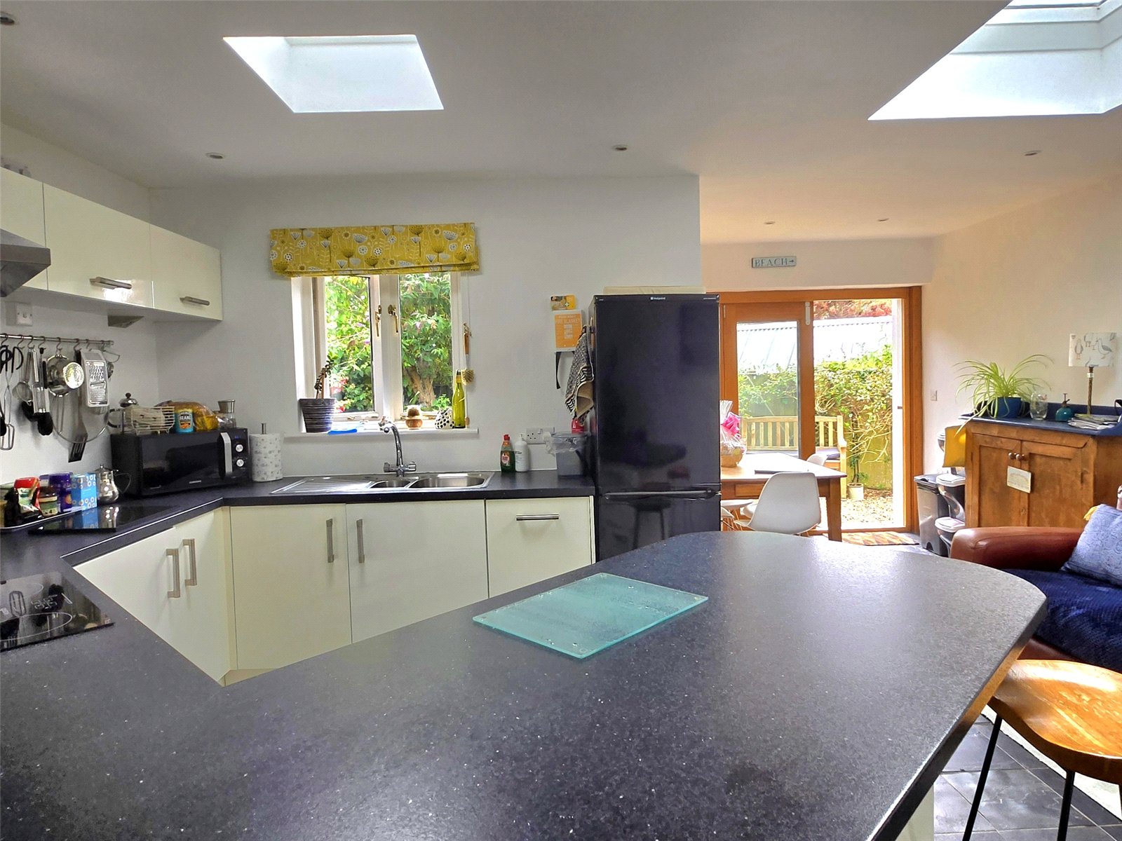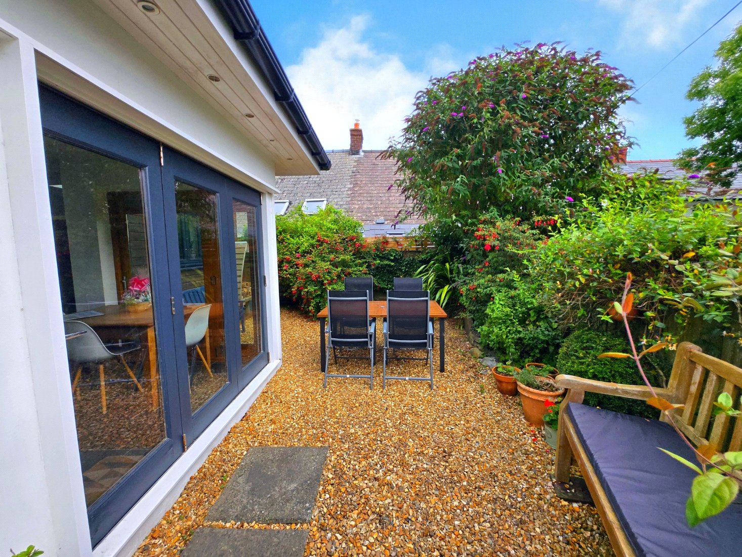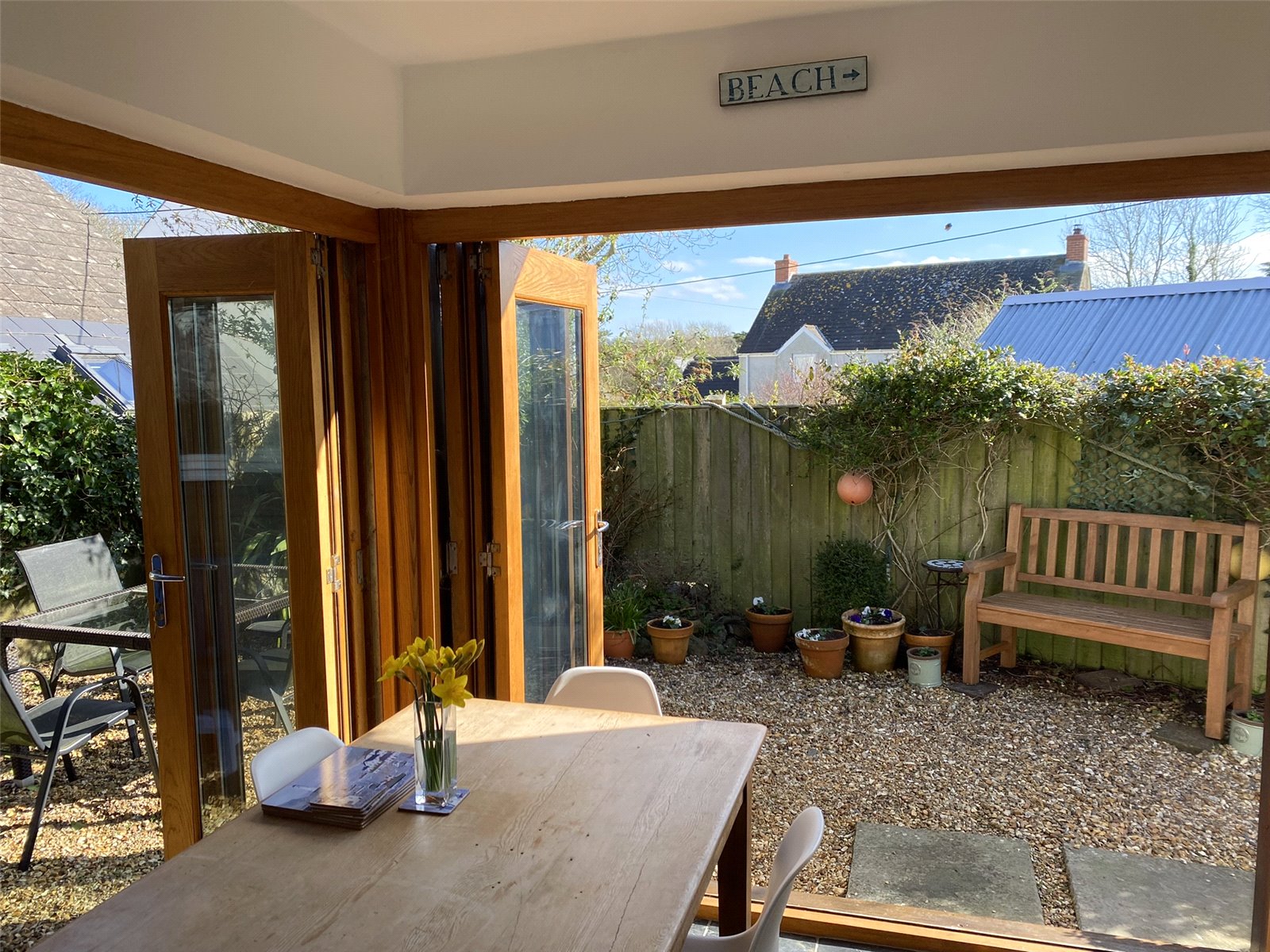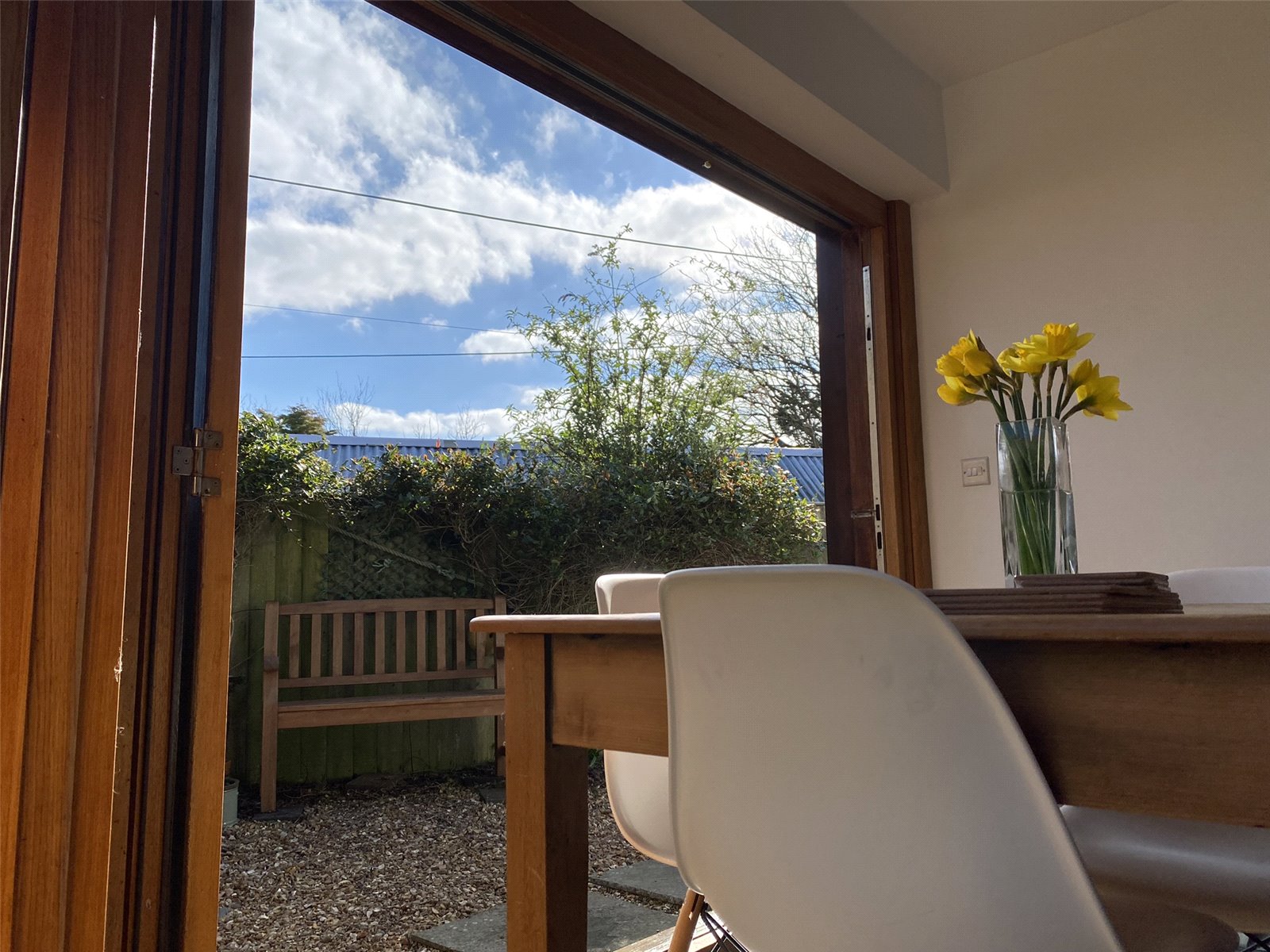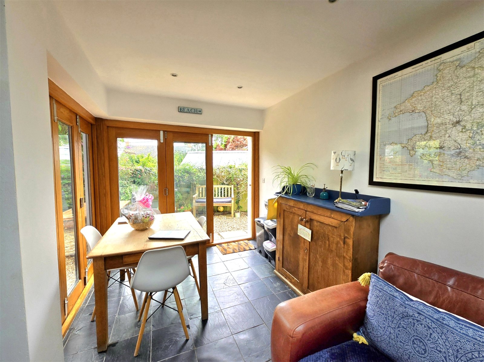 Diner area comprises a sizeable dining area, with two bi-folding double-glazed wood finish doors, giving the room a bright and airey atmosphere and access to the garden. Perfect for entertaining and allowing a sea-breeze through the house.