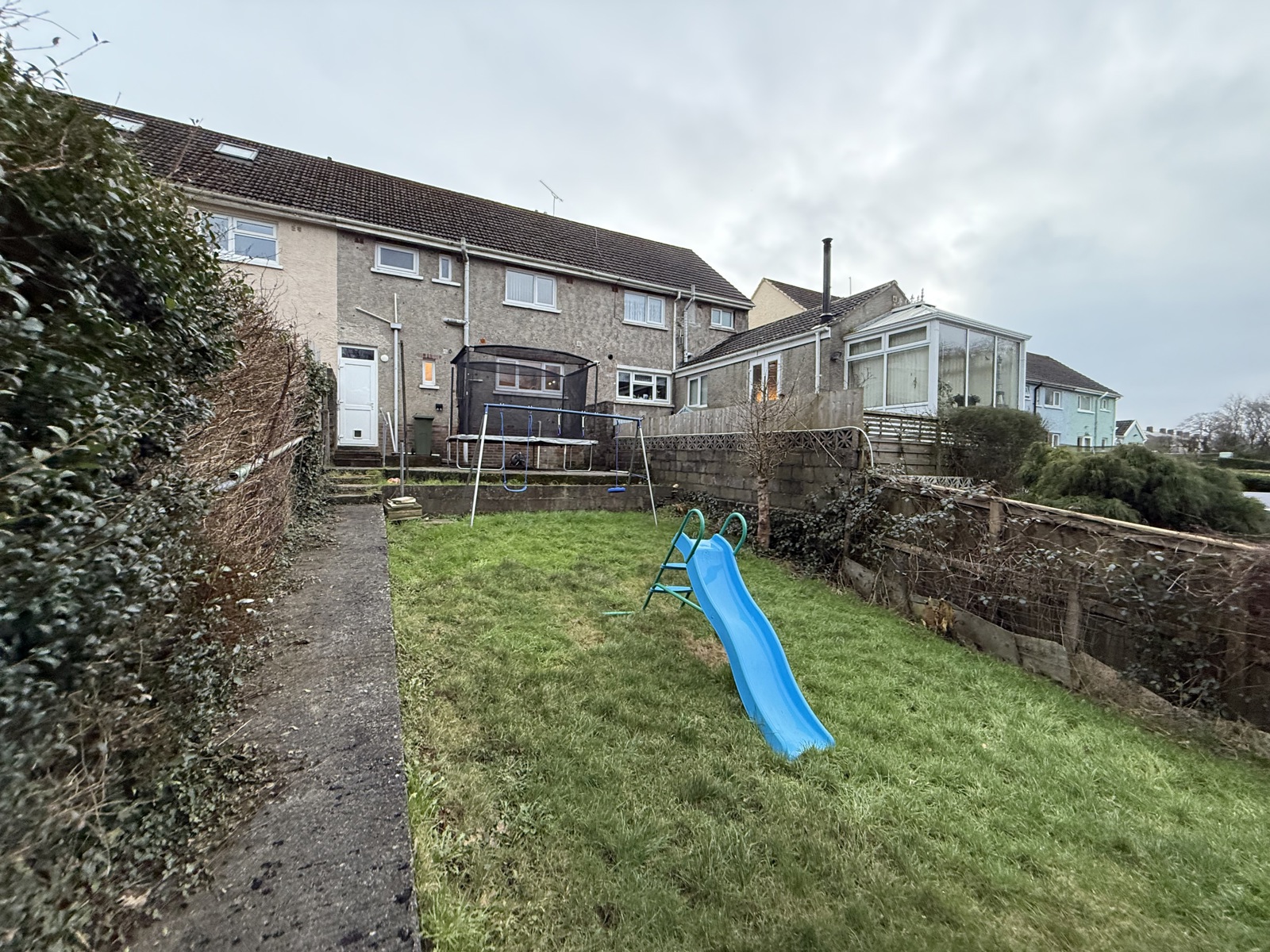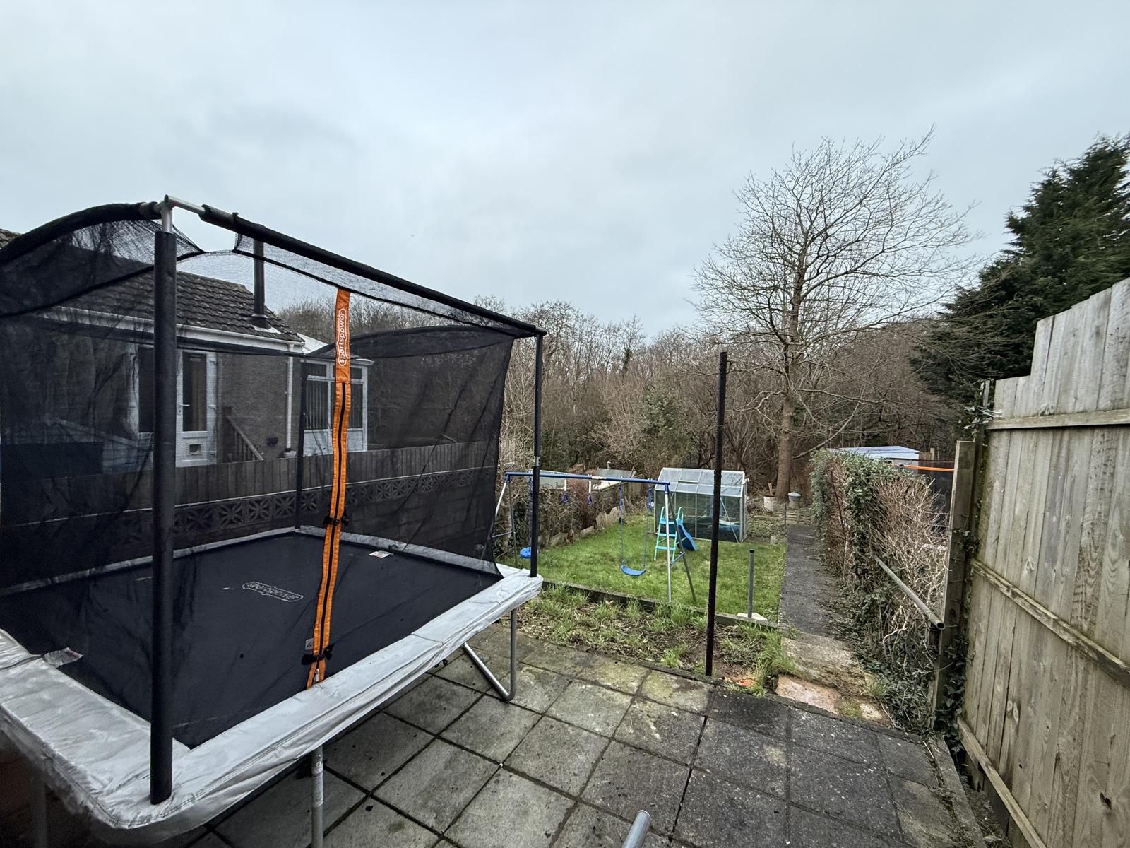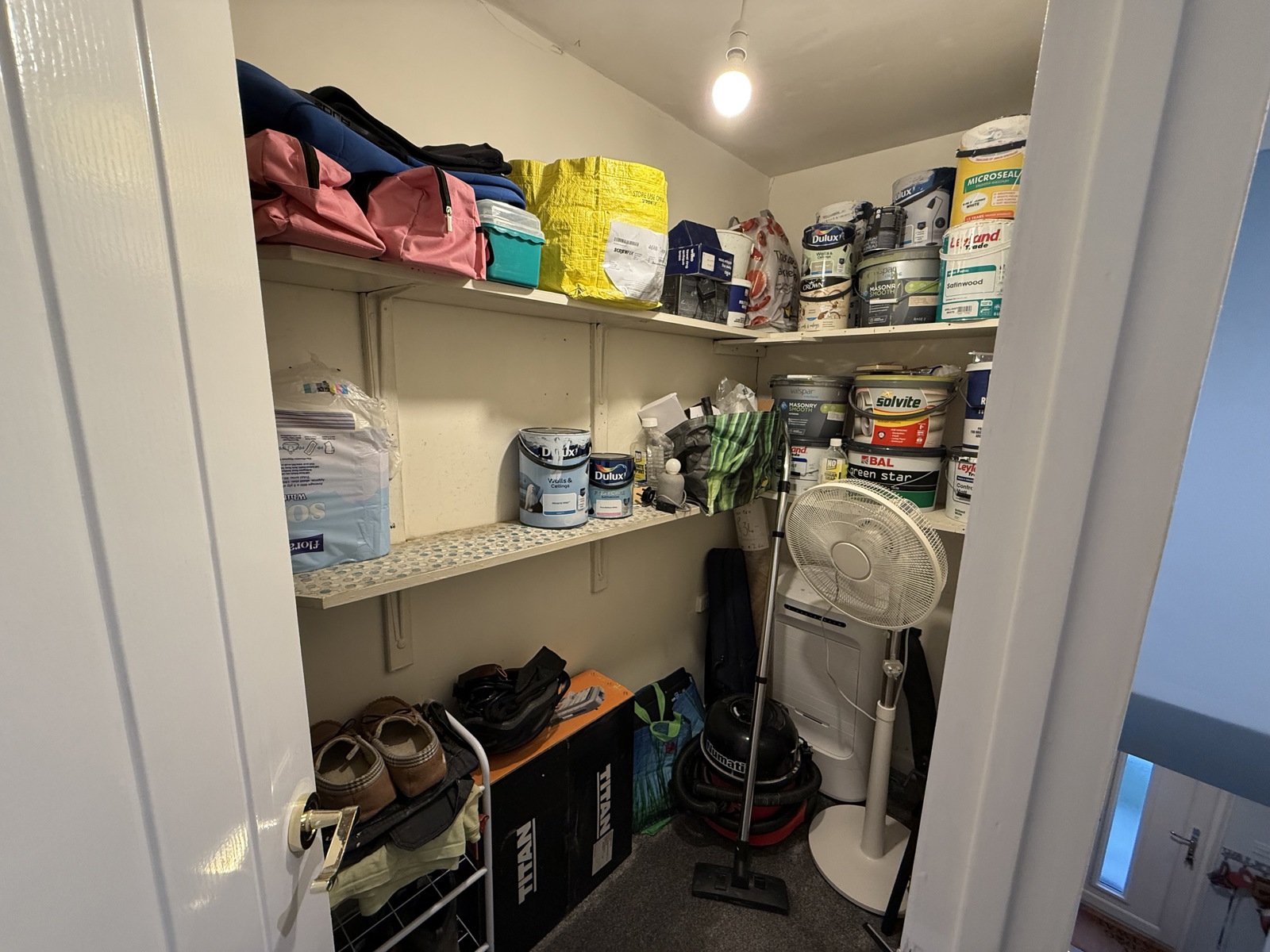 Flooring laid to laminate, kitchen units along the wall, double glazed window looking over the rear garden, radiator on wall under breakfast bar, also a storage cupboard for the washing machine and tumble dryer as well as the boiler.