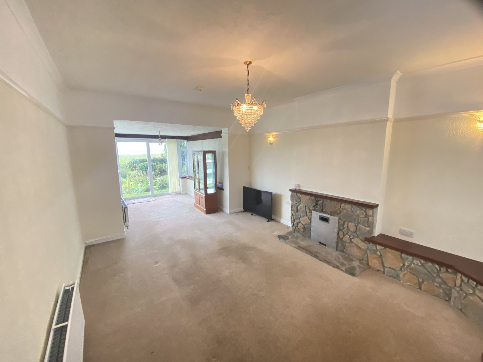 Spacious living room with duel aspect window to the front and rear. The rear of the room has doors leading to the garden and has amzing sea views across open countryside.