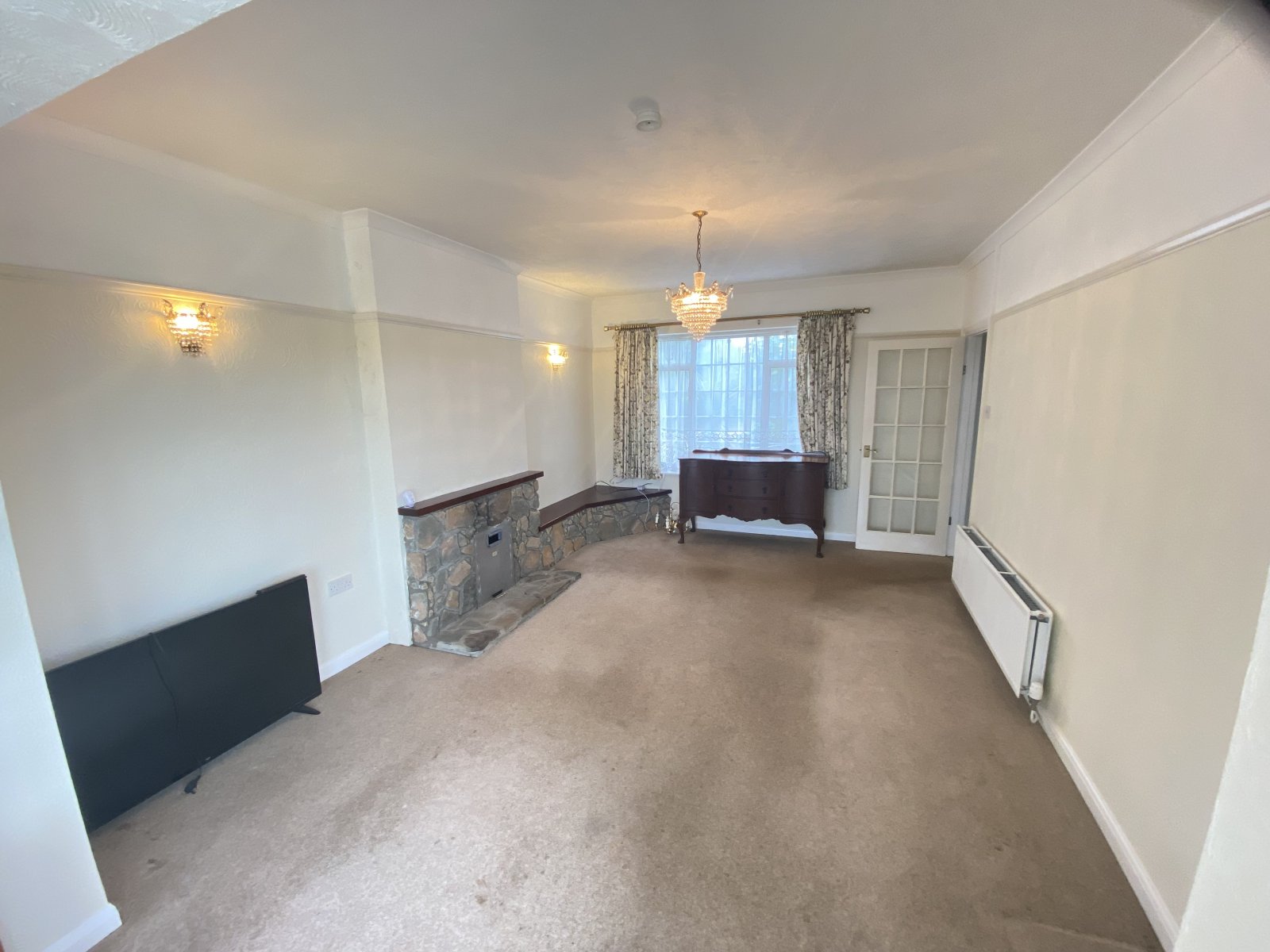 Fitted carpet, side facing double glazed window.