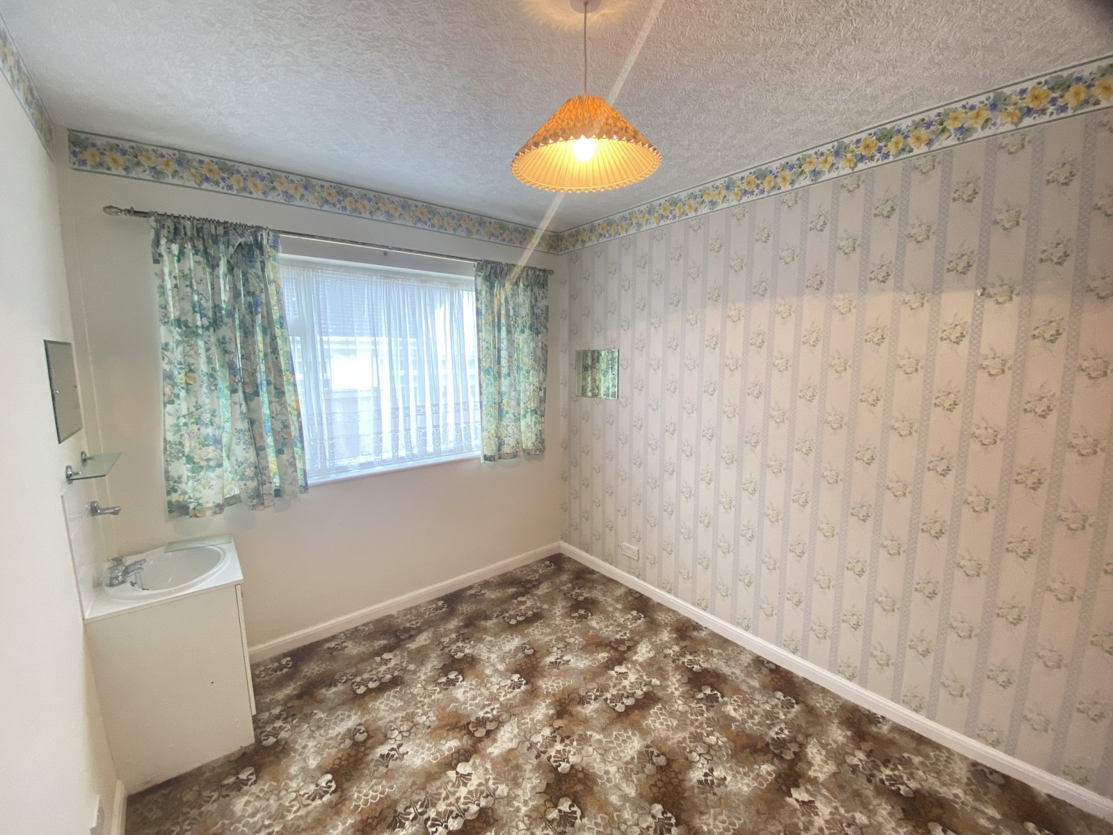Good size double bedroom with side facing double glazed window. Fitted carpet, wash hand basin.