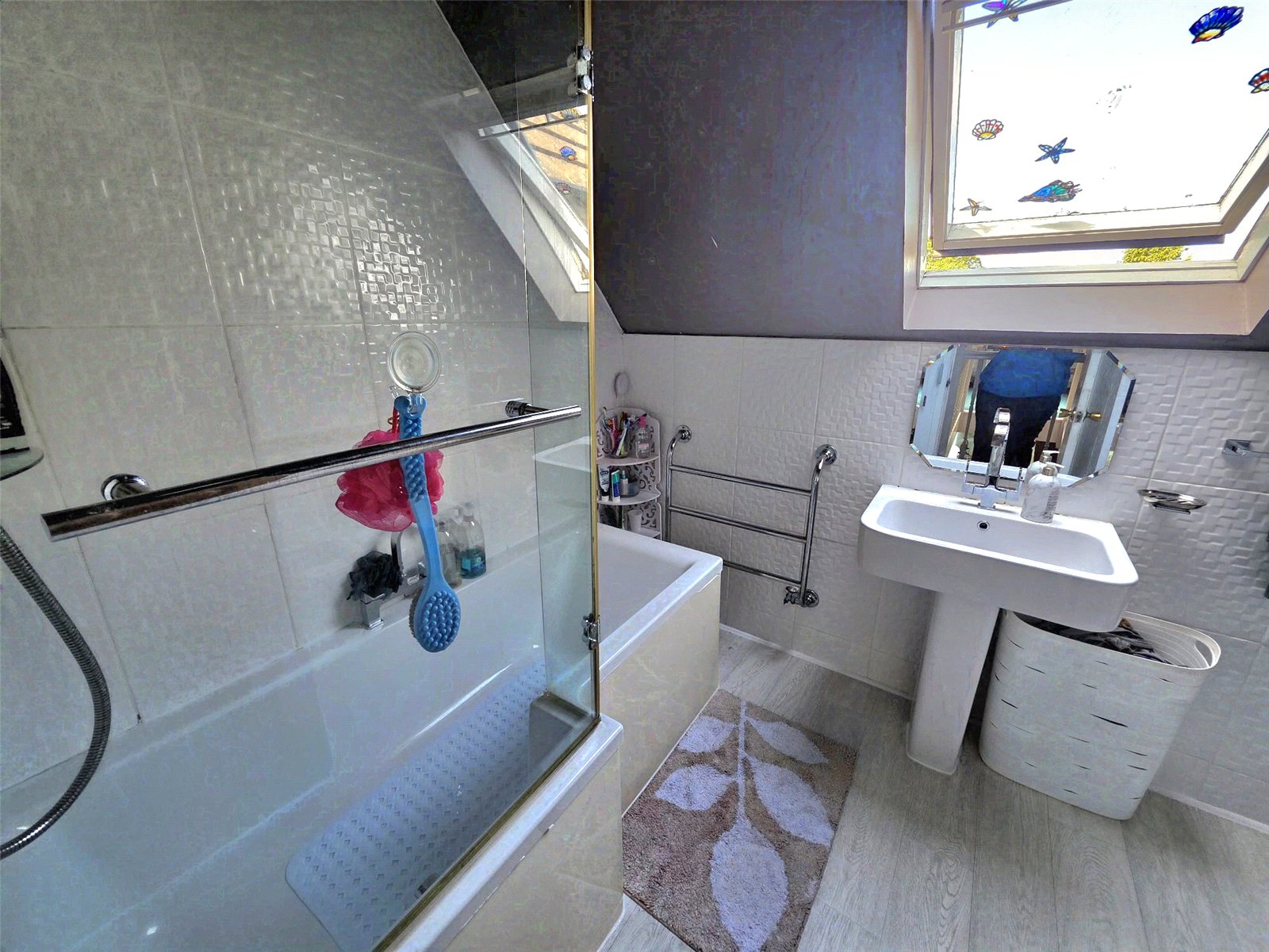The remaining three bedrooms all benefit from built-in storage and pleasant outlooks. A spacious family bathroom serves these rooms and includes a four-piece suite with a bath, rain head shower, vanity basin, WC, and bidet. Quality tiling and a heated towel rail add a touch of luxury.