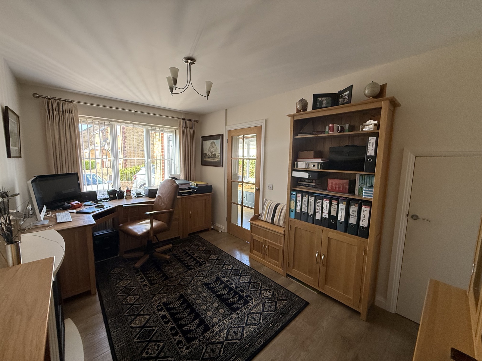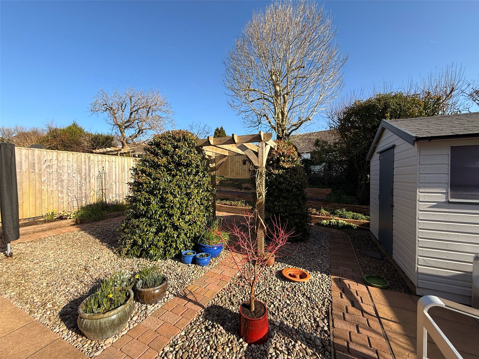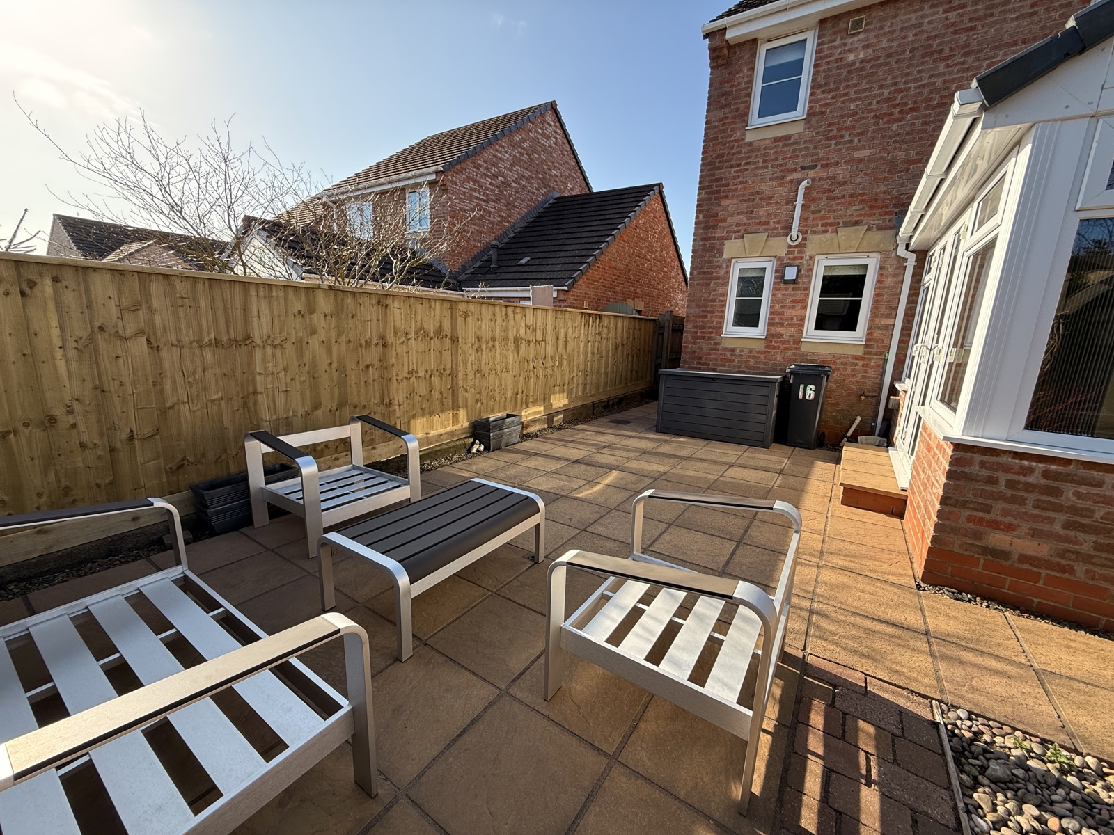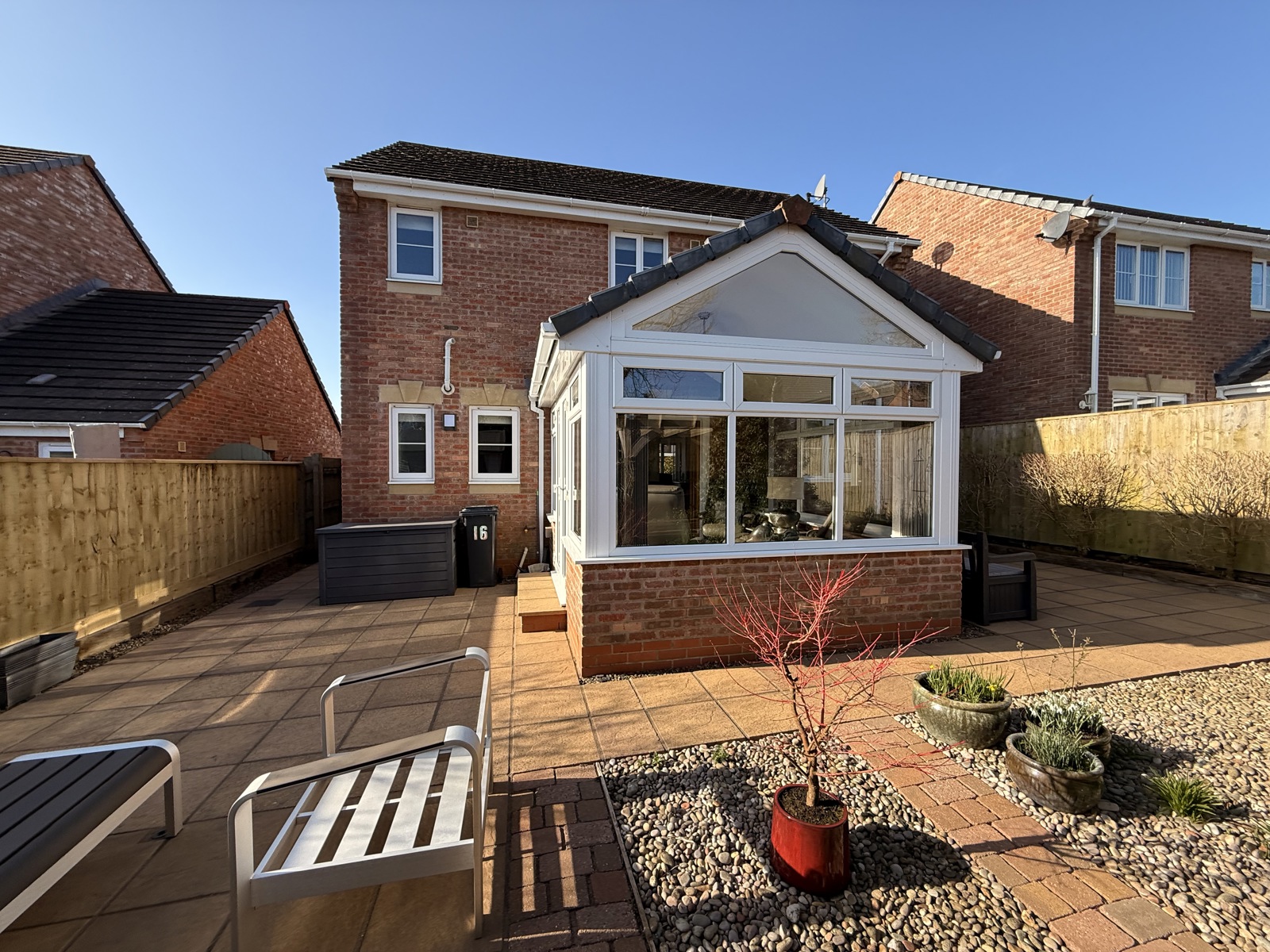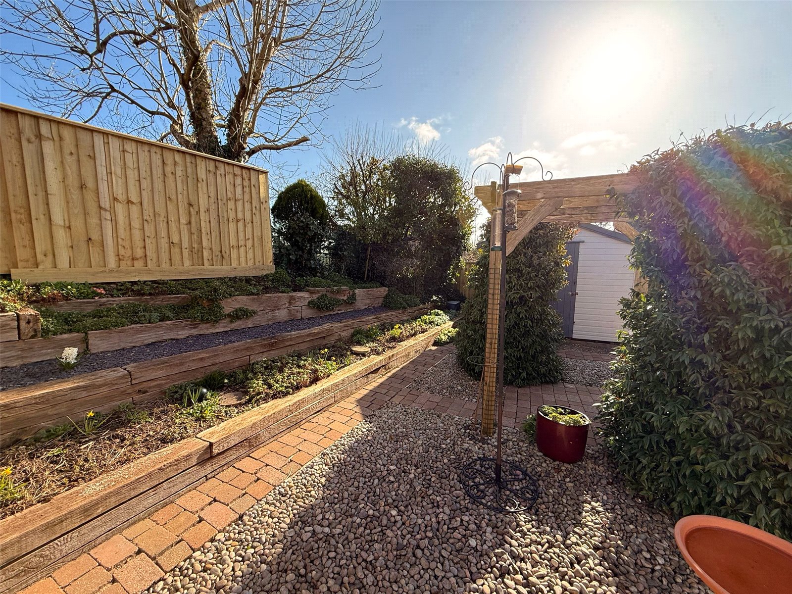 To the fore of the property is a paved driveway suitable for a number of vehicles as well as EV charging point. There is side access to the rear garden, which comprises of an immaculately kept patio area, with raised beds to the rear and power sockets either side, outside tap and garden shed- a space perfect for summer entertaining.