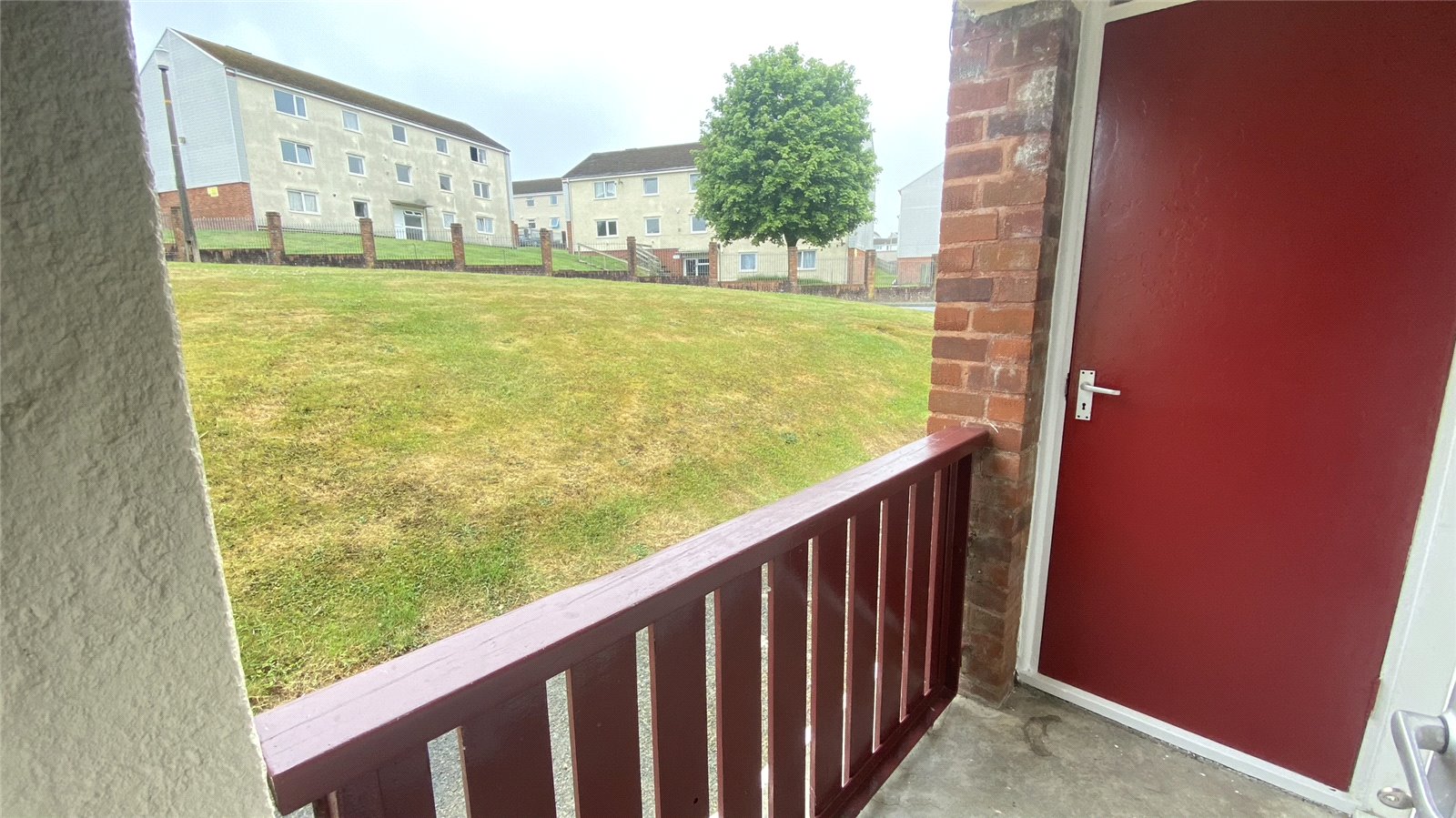 Ground floor balcony, with an outlook over the Goshawk Road estate. Outdoor access to;
