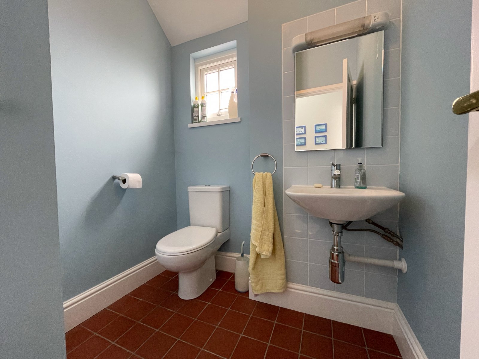 Tile floor, WC, wash hand basin, double glazed obscure uPVC window to side.