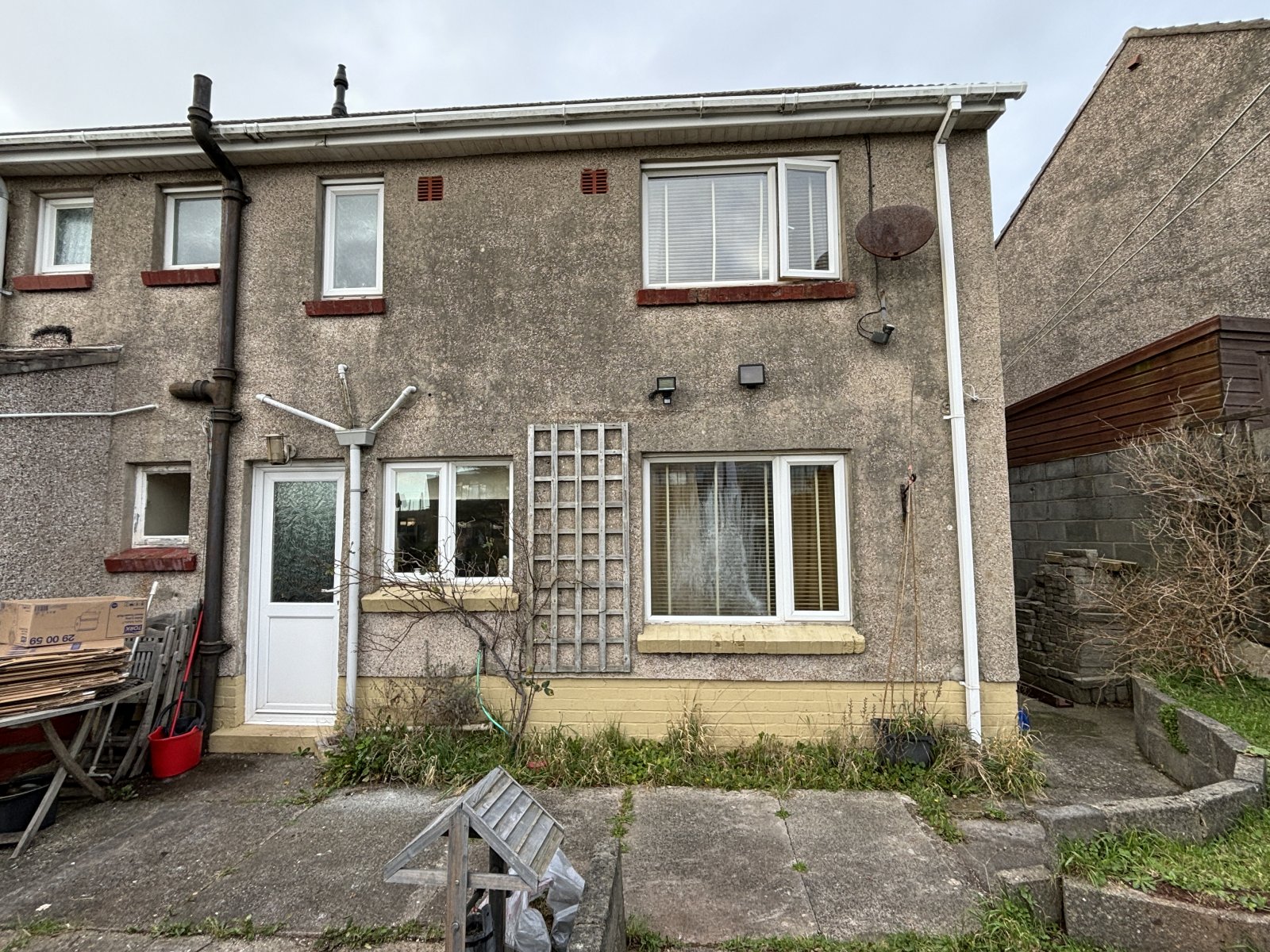 This property is an end of terraced 3 Bedroom family home. It boasts double glazed windows and doors and gas central heating. The Entrance Hallway leads into the large Lounge / Dining Room. There is a gas fire place as the focal point of the room and there are double glazed windows overlooking the front and the rear Gardens. There is a door leading into the Kitchen / Utility area which has a good range of wall and base units with space and plumbing for free standing appliances. There is a double glazed door leading onto the rear Garden. The first floor landing leads to three Bedrooms and there is a possibility of converting the attic into a further room as neighbouring properties have done.