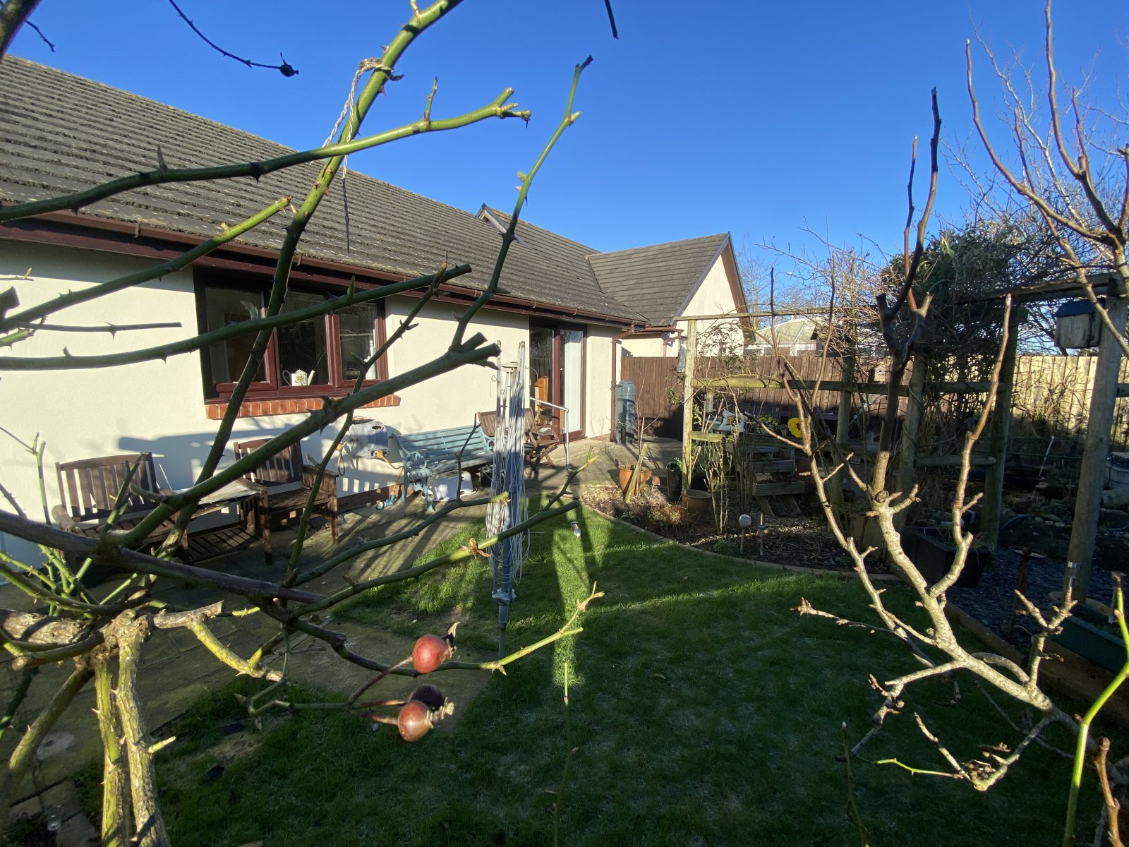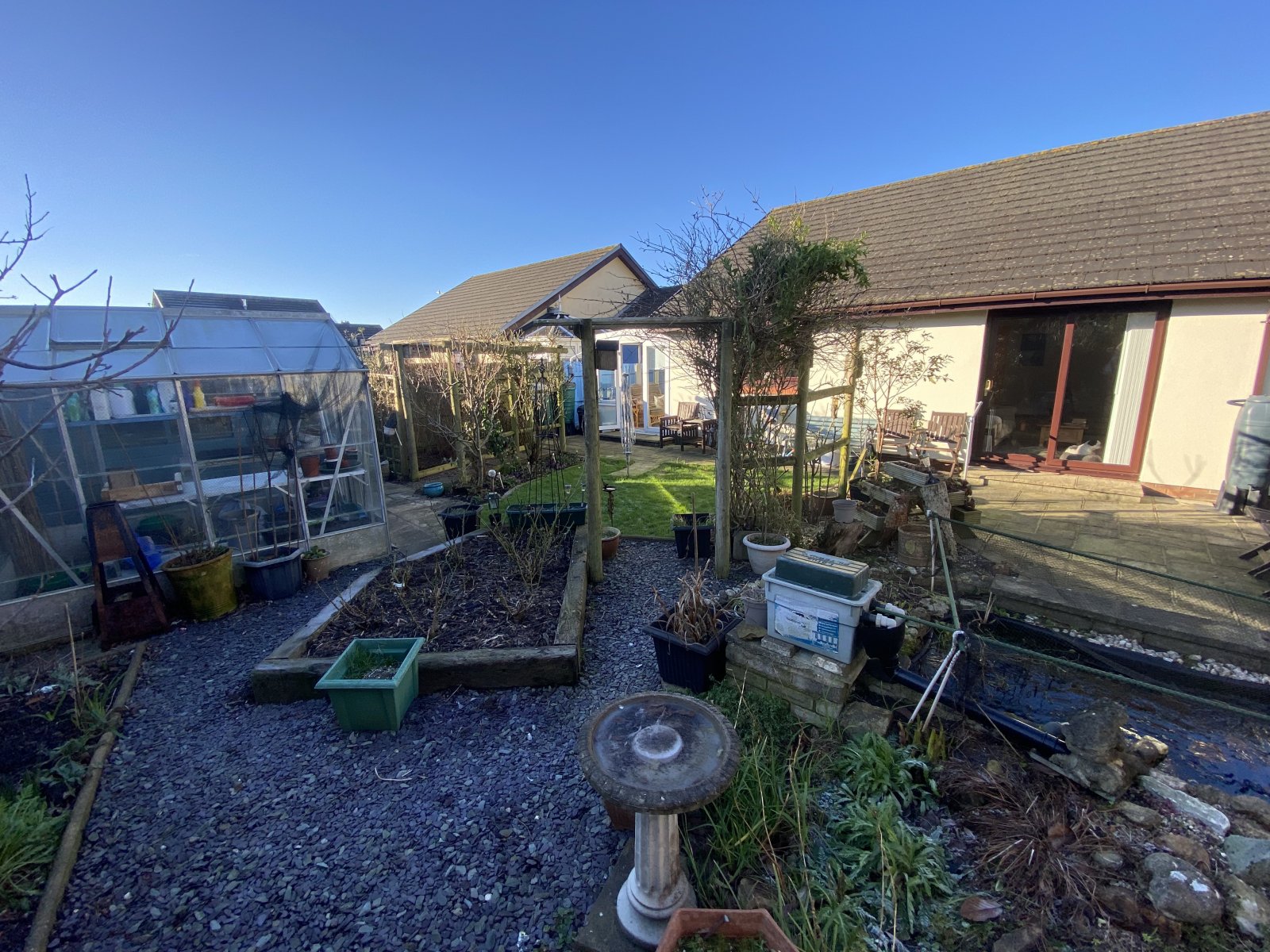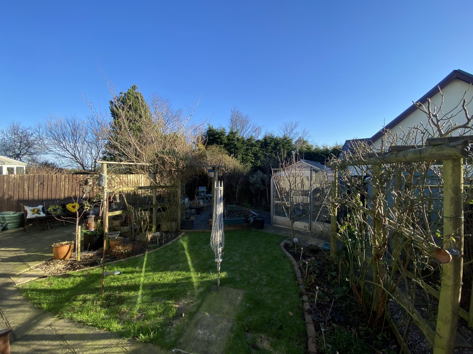There are lawns to the fore and the rear of the property, with a patio and mature shrubs to the rear, where there is also a greenhouse, garden shed and pond. The driveway to the fore benefits from parking space for two cars.