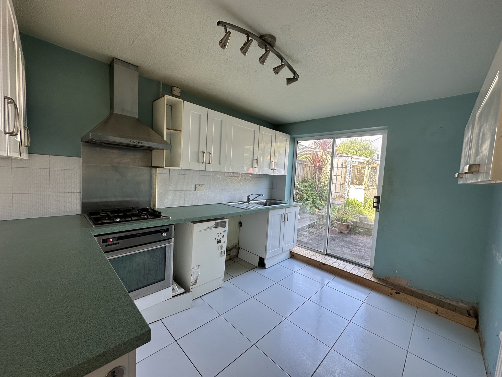 Wall & Base Mounted Units, Integrated Oven and Hob, Tiled Floor, Extractor, Sink, Radiator, Glass Doors onto Garden