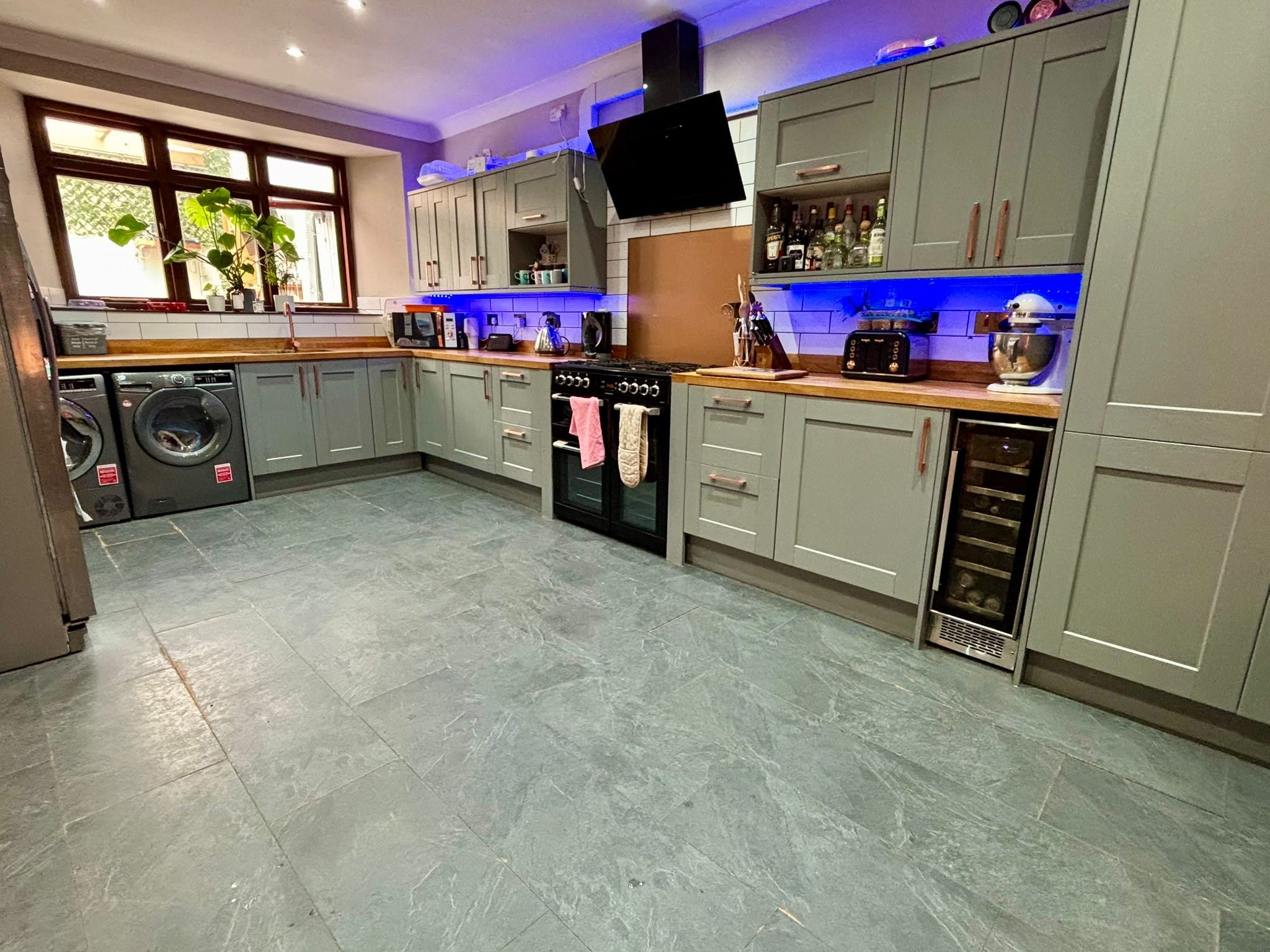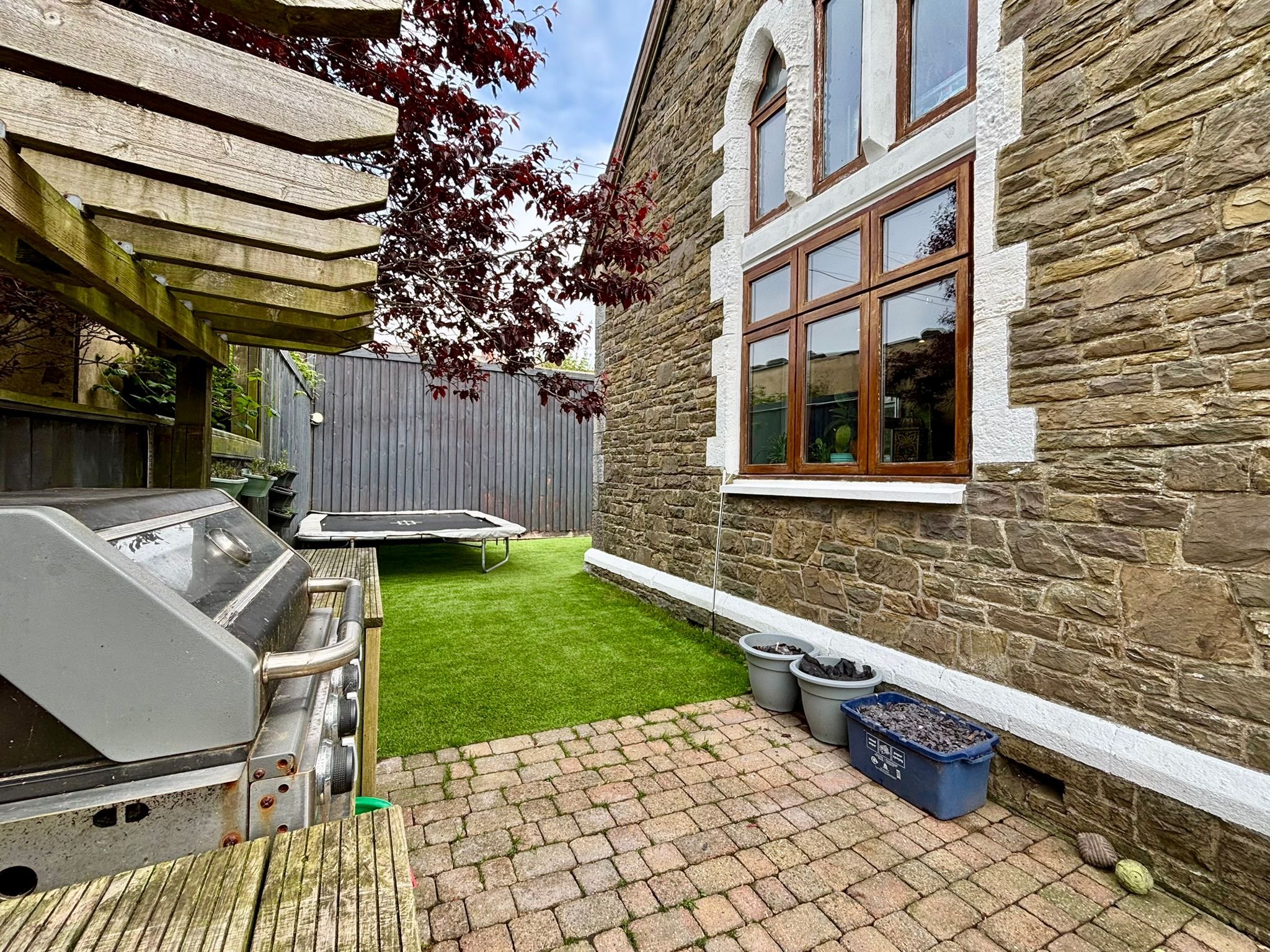 Externally, the home benefits from a versatile garden room, offering exciting potential—ideal as a home office, creative studio, gym, or a great playroom for the children. A side access leads conveniently to the rear and side garden, where you’ll find thoughtfully landscaped outdoor spaces, including decked areas and an outdoor kitchen/BBQ zone—perfect for entertaining in the warmer months. The garden is mainly laid with low-maintenance astro turf, creating a safe, secure, and sunny environment for children to play. There’s also a potting shed and a series of peaceful sun-trap corners for relaxing or gardening.