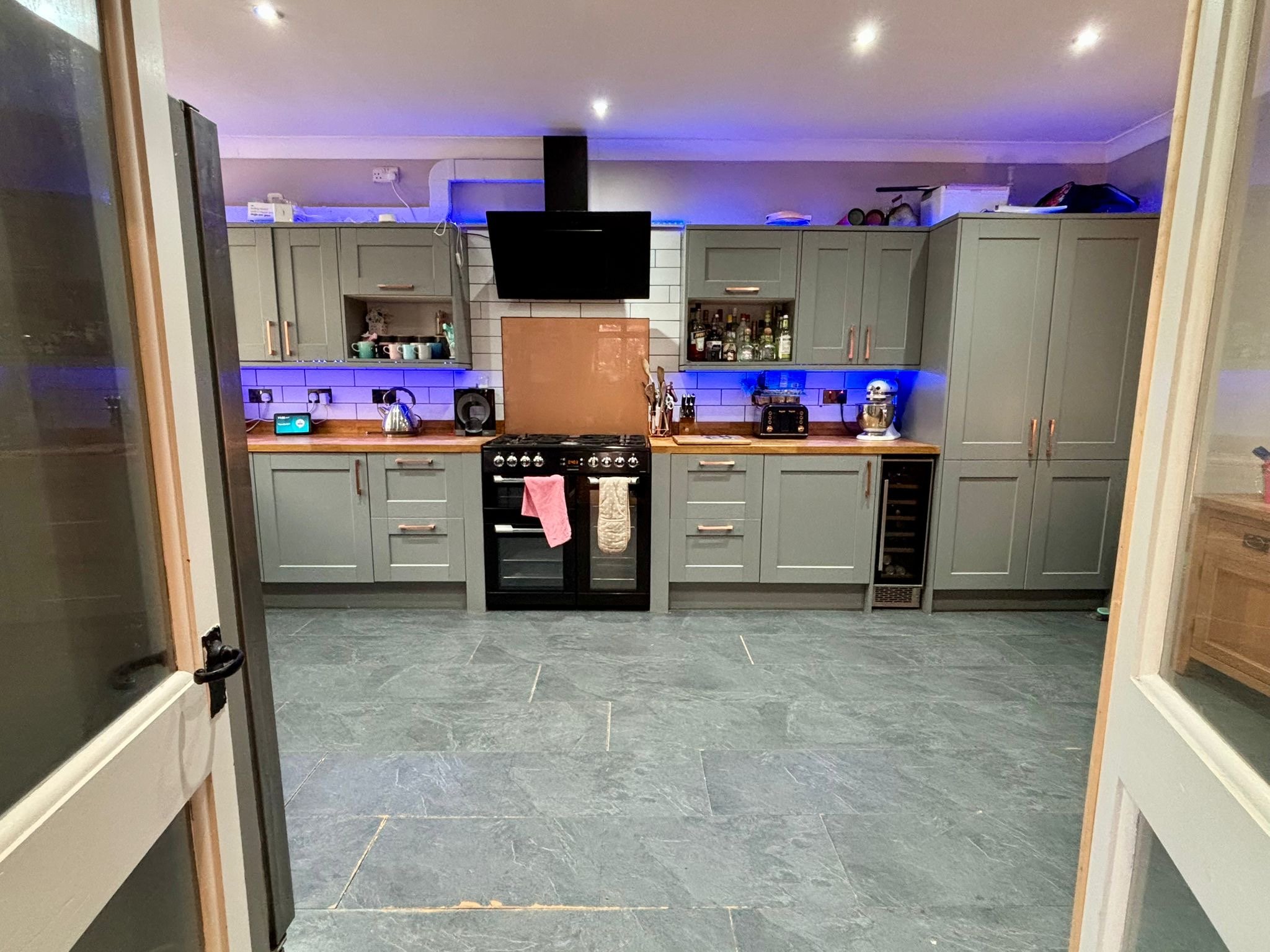 The ground floor boasts two reception rooms which is the lounge and the garden room, ideal for both formal entertaining and relaxed family living. These versatile spaces are enhanced by the chapel’s original proportions, providing a sense of grandeur without sacrificing comfort. The heart of the home is the large kitchen/ breakfast room, offering ample room for cooking, dining, and socializing. Thoughtfully designed, it blends traditional styling with practical amenities, making it the perfect space for everyday use.