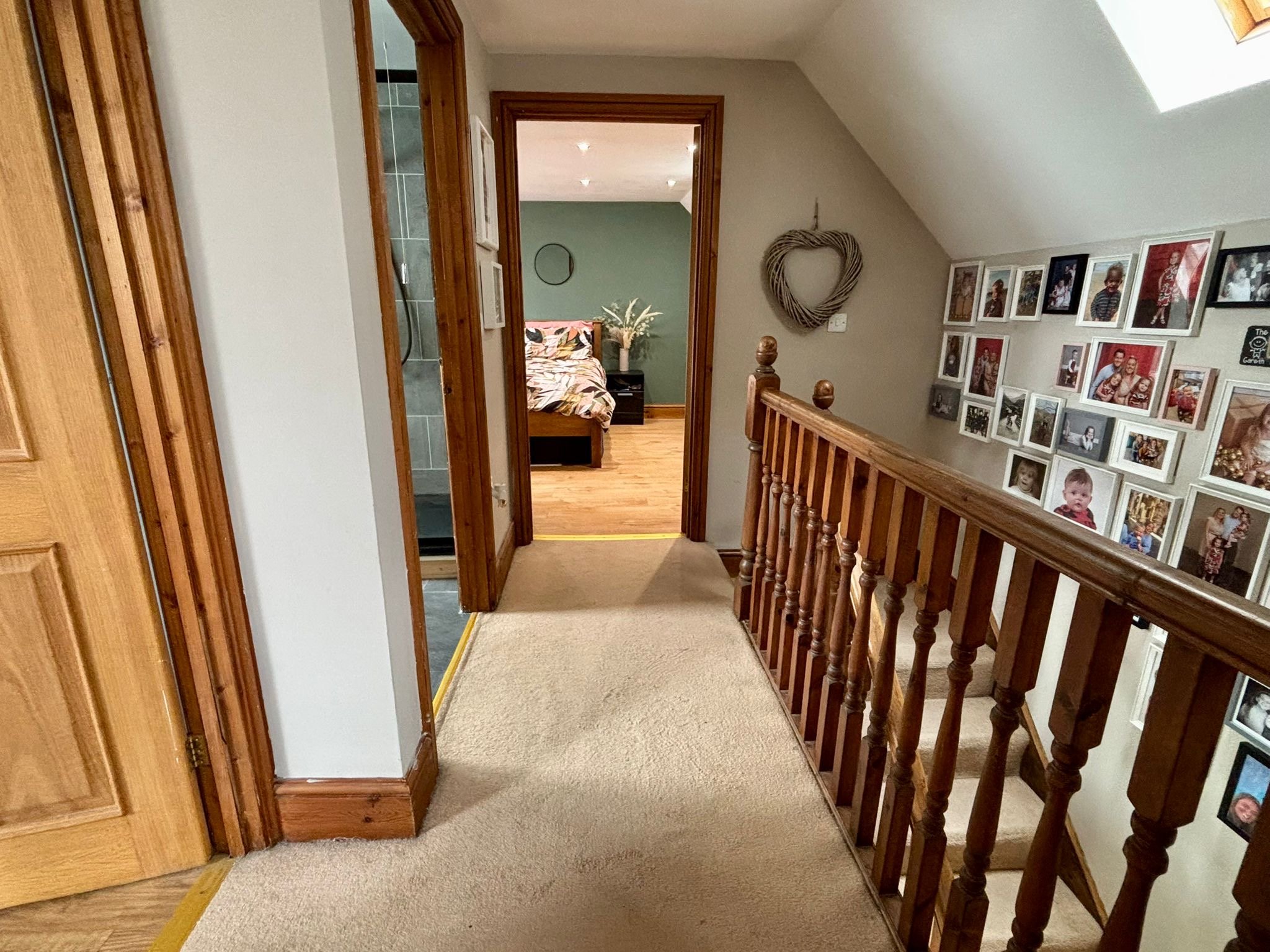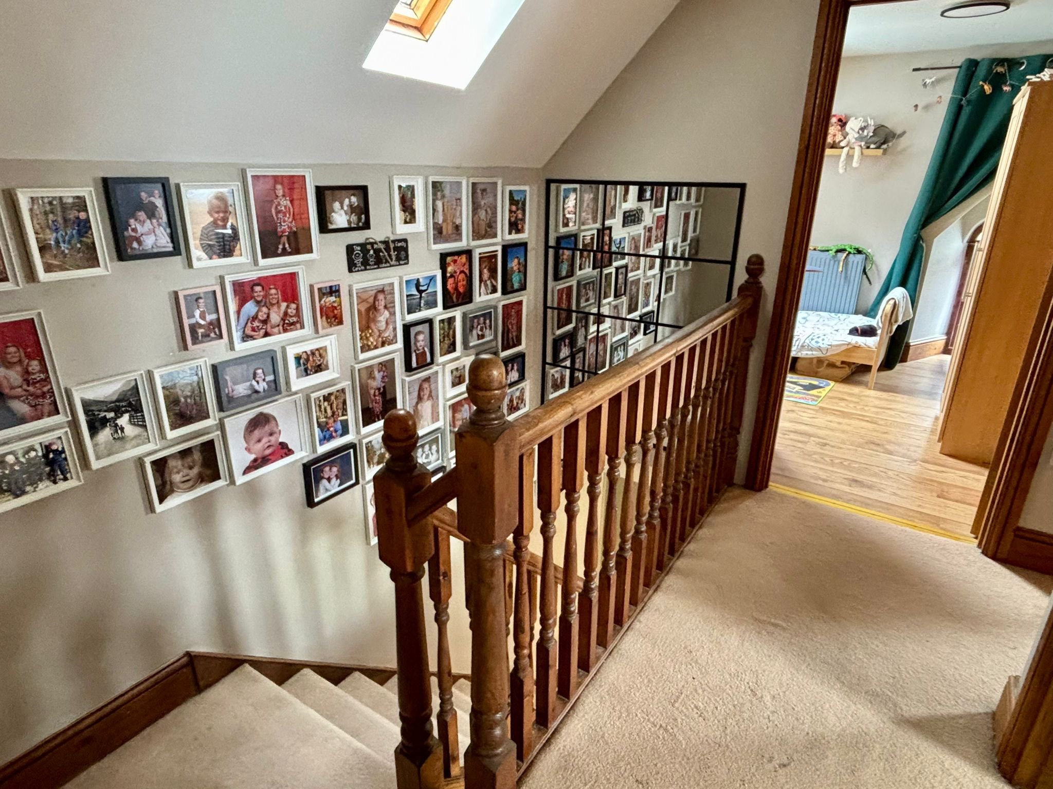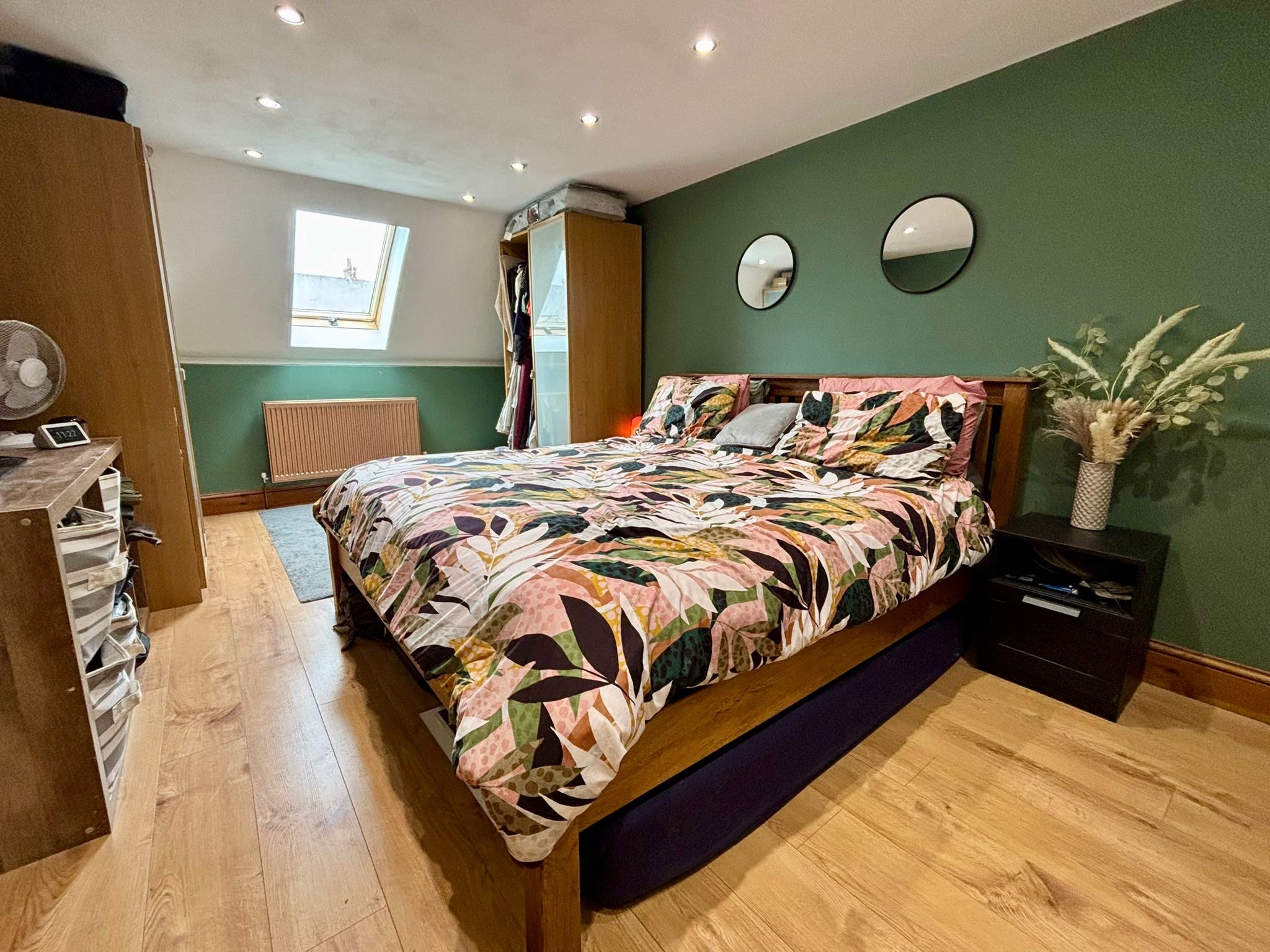 Upstairs, the property continues to impress with three large double bedrooms, each filled with natural light and offering generous storage. The family bathroom is a standout feature, fitted with an eye-catching, oversized bath that invites long, luxurious soaks. The bathroom combines modern fittings with a nod to the property's character, creating a peaceful retreat.
