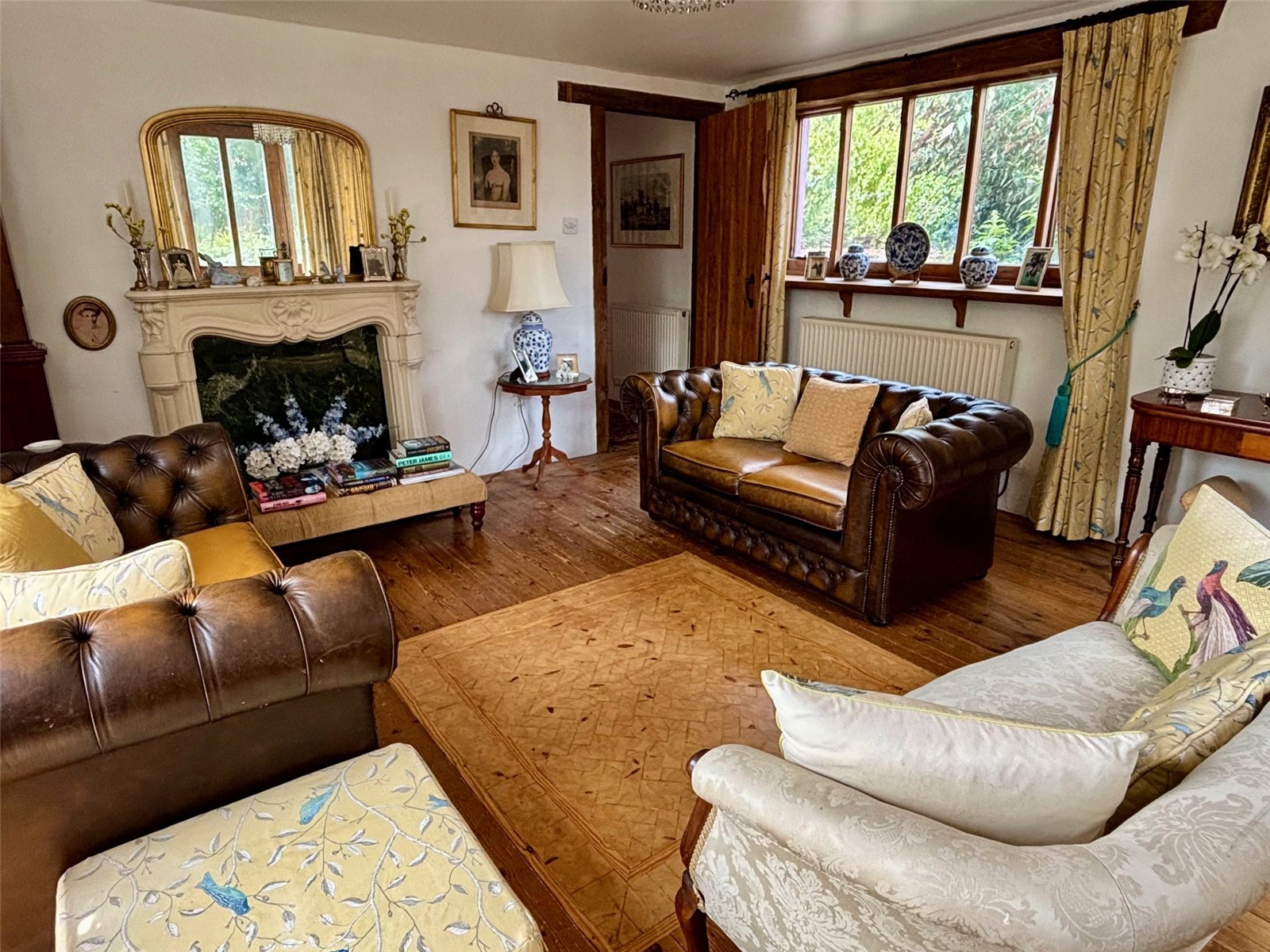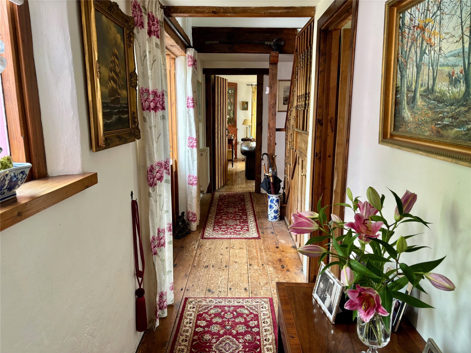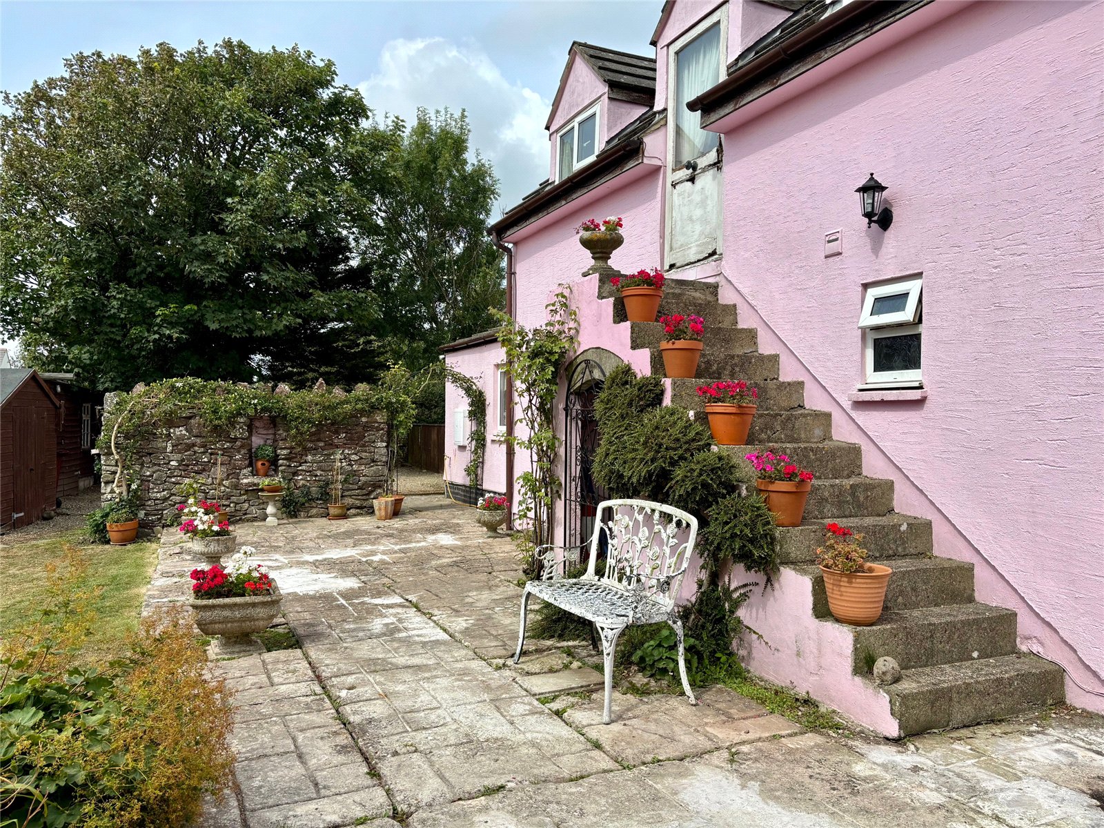 A gated driveway provides off-road parking and leads to a beautifully maintained wrap-around garden, brimming with mature shrubs, fruit trees, and classic cottage garden plants. There is also further off roading for several vehicles at the front of the property. This generous outdoor space offers plenty of room to relax or entertain, with the natural beauty of the surroundings enhancing the property’s serene atmosphere.