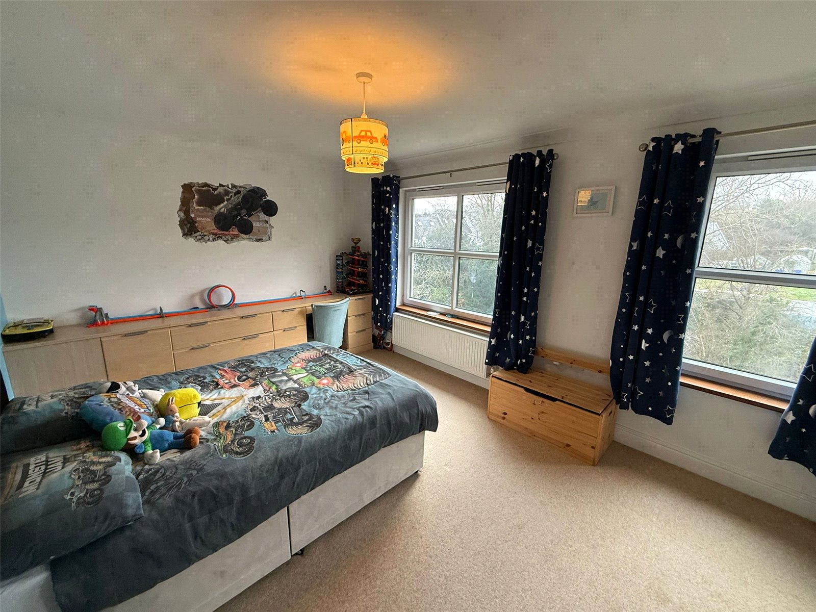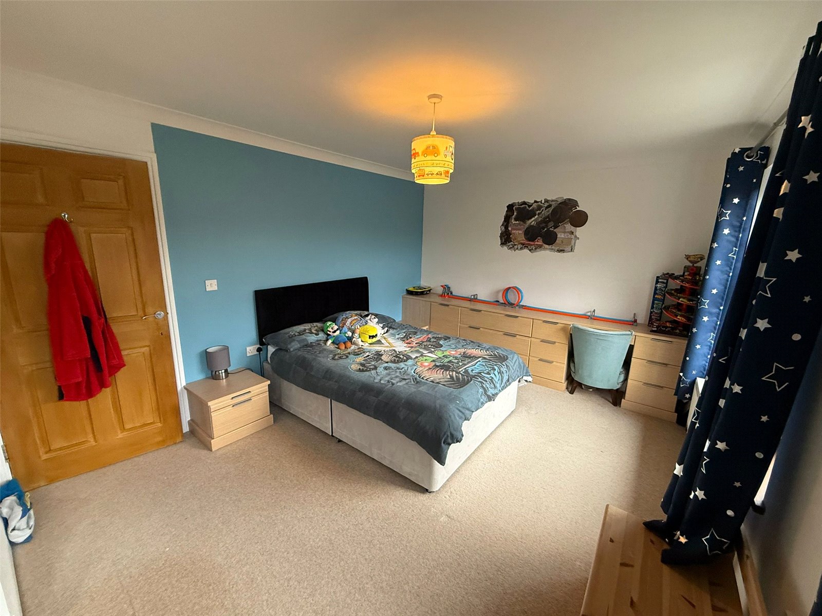Floor laid to carpet, two uPVC double glazed windows overlooking the front of the property. Fitted wardrobes.
