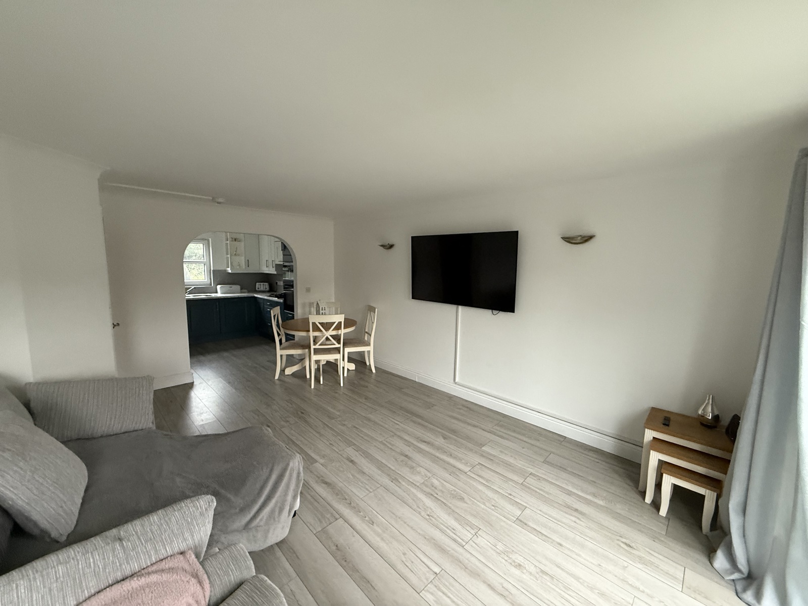 Laminate flooring, uPVC doubled glazed window and a Juliet balcony. Archway that leads to;