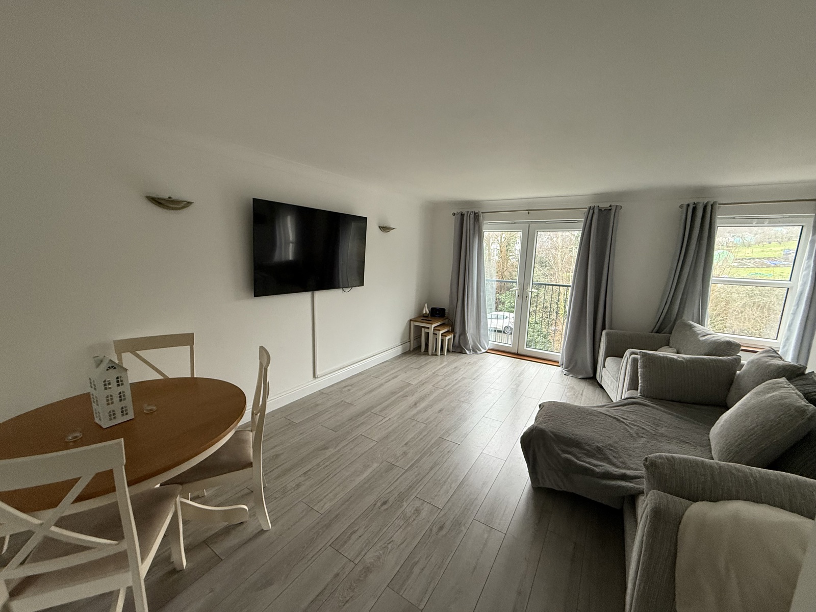 Wooden flooring, two uPVC double glazed windows, one at the front and another at the rear.