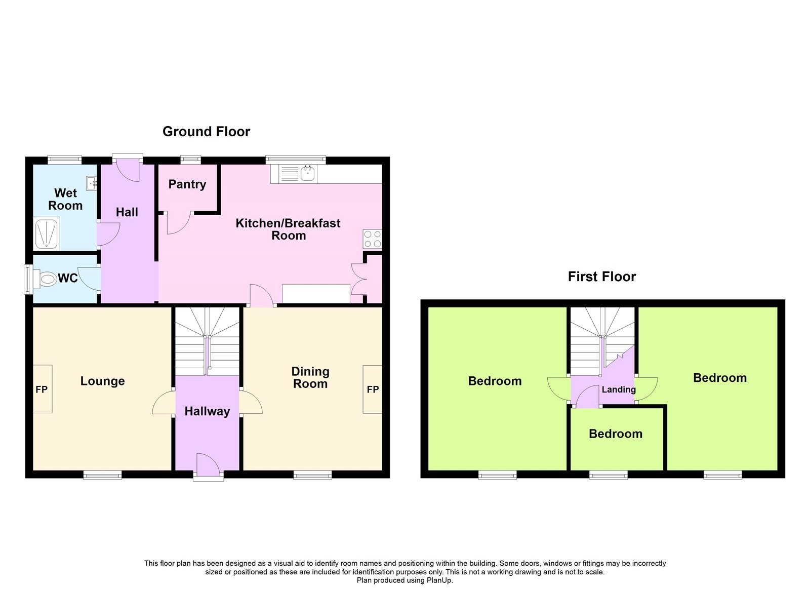 Good size rear gardens over 2 levels. Mainly lawned and mature hedge rows, shrubs and trees.
