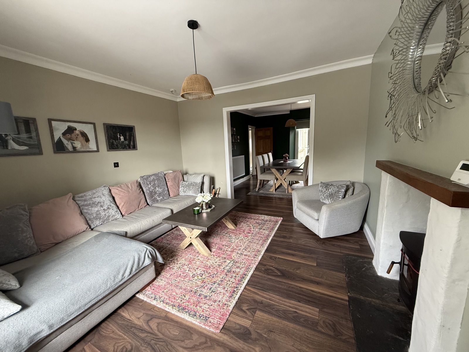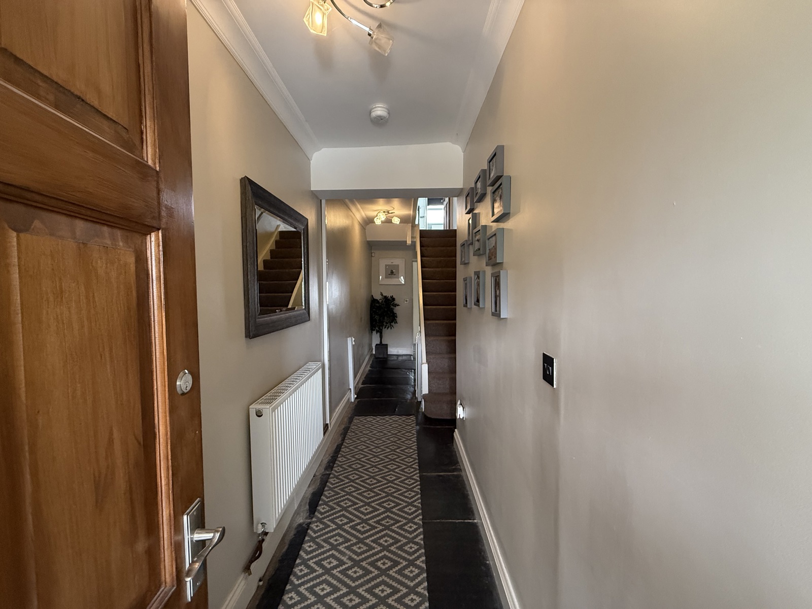 UPVC double glazed front door, radiator, slate flagstone flooring, stairs to first floor