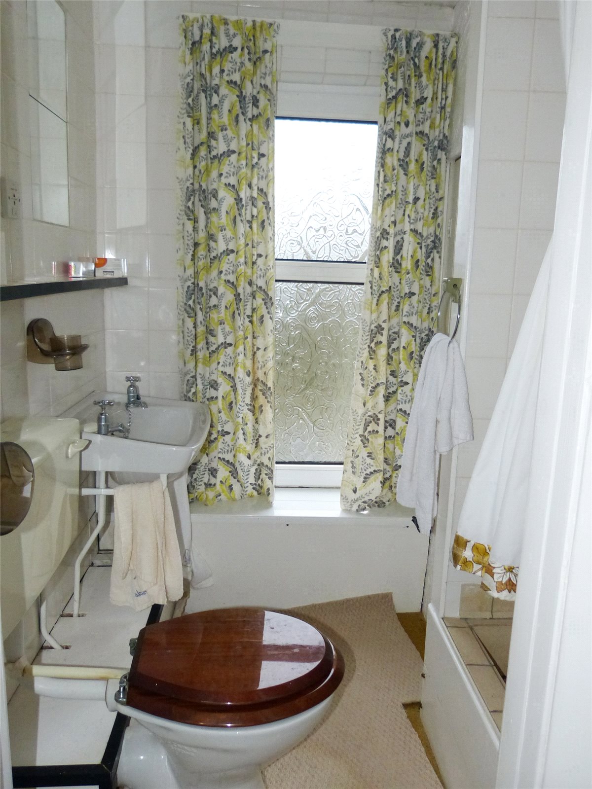 Spacious bathroom with corner bath, sink, toilet, double glazed obscure window, light, eperate cloakroom.