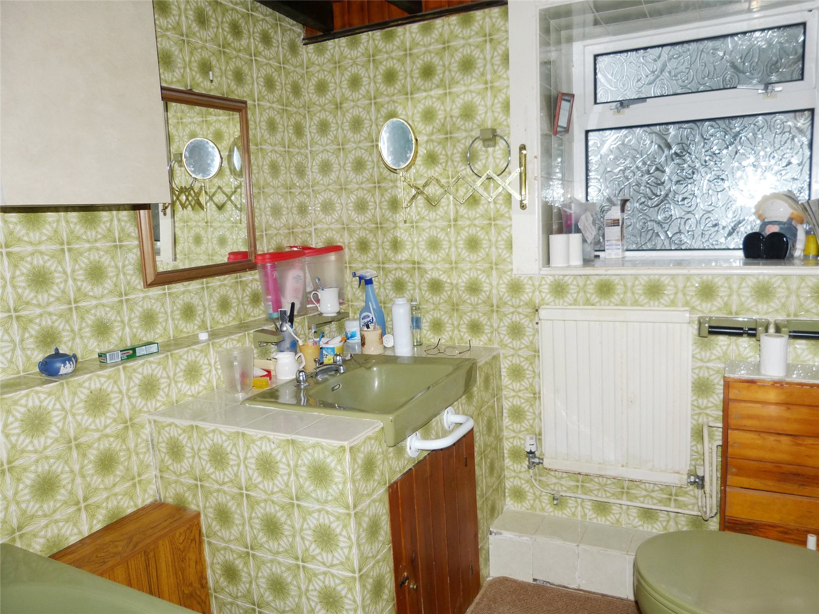 Double glazed window to fore, radiator and light.