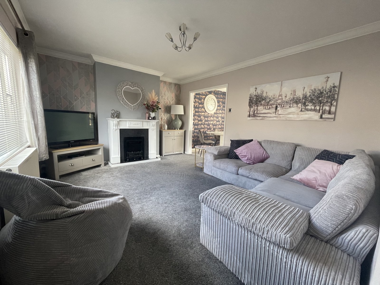 Carpet flooring, electric fire place, double glazed uPVC window to fore, radiator.