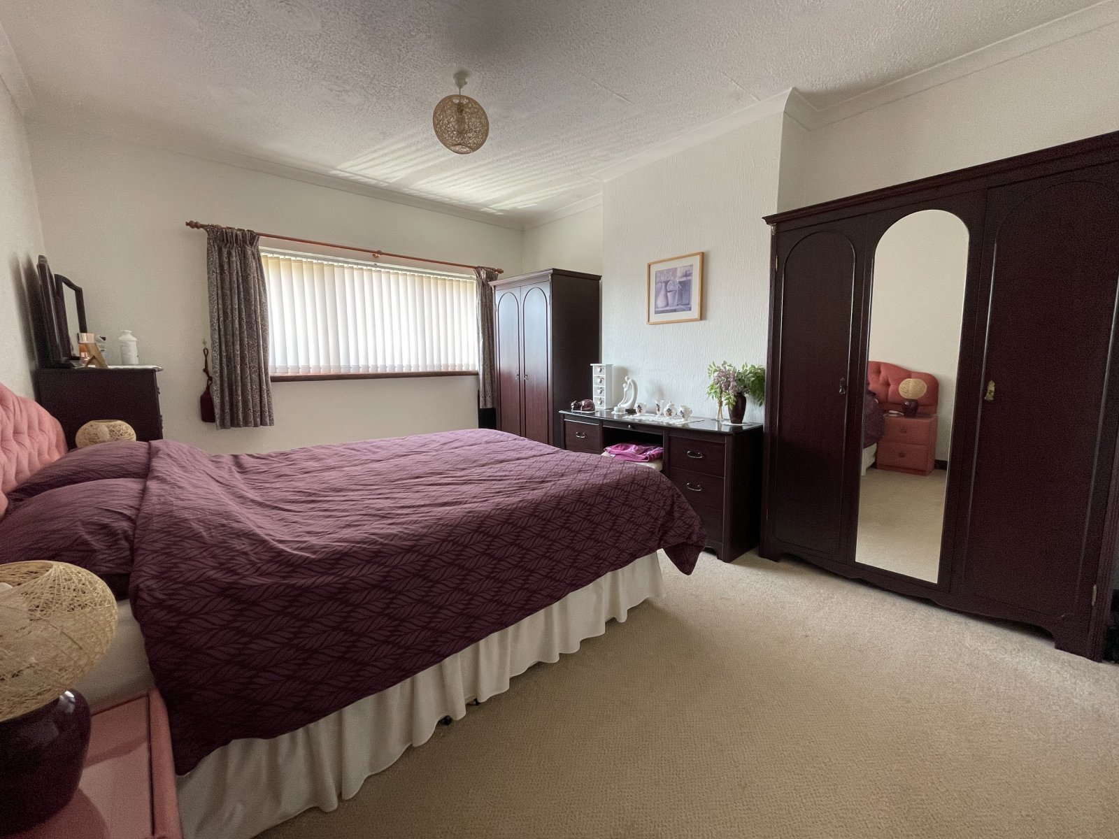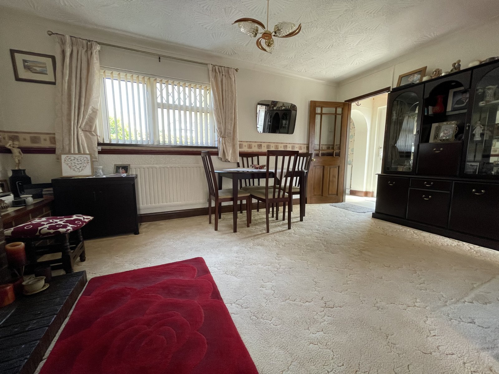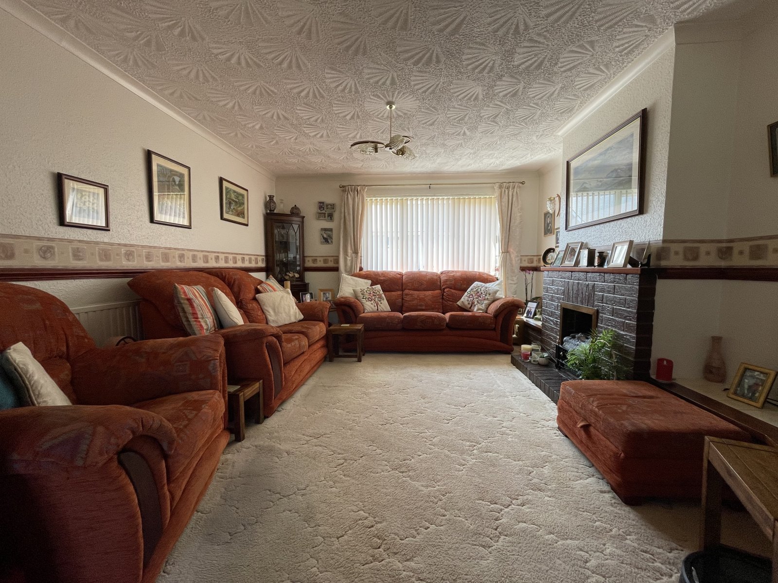 Carpet flooring, electric fire with brick surround, double glazed uPVC window to fore, radiator.