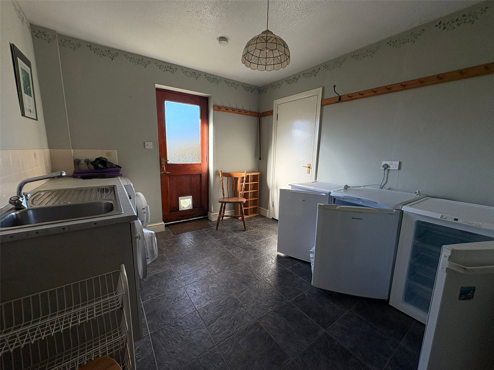 Slate tiles, access to the garage, W/C, double glazed windows, access to the garden.