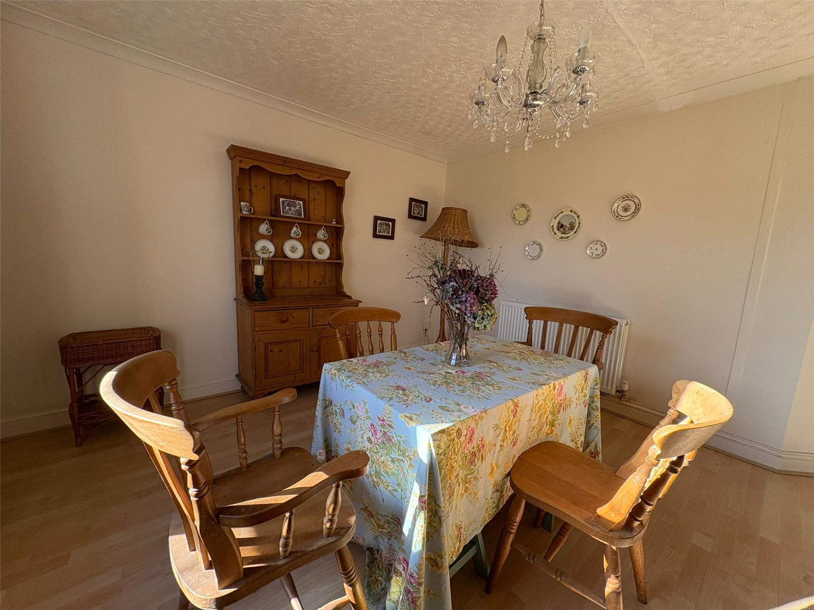 Carpets and laminate flooring, oil central heating, double glazed windows, patio doors from the living room to the garden.