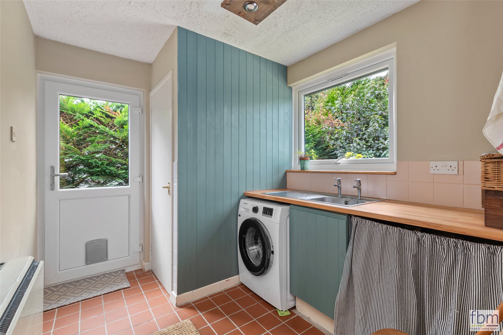 Rear-facing, practical, quarry tiled, utility room, benefitting from base units with space and plumbing for washer/dryer, stainless steel sink & drainer, heater, lighting, uPVC double-glazed window and double-glazed door allowing for side access. Access to;