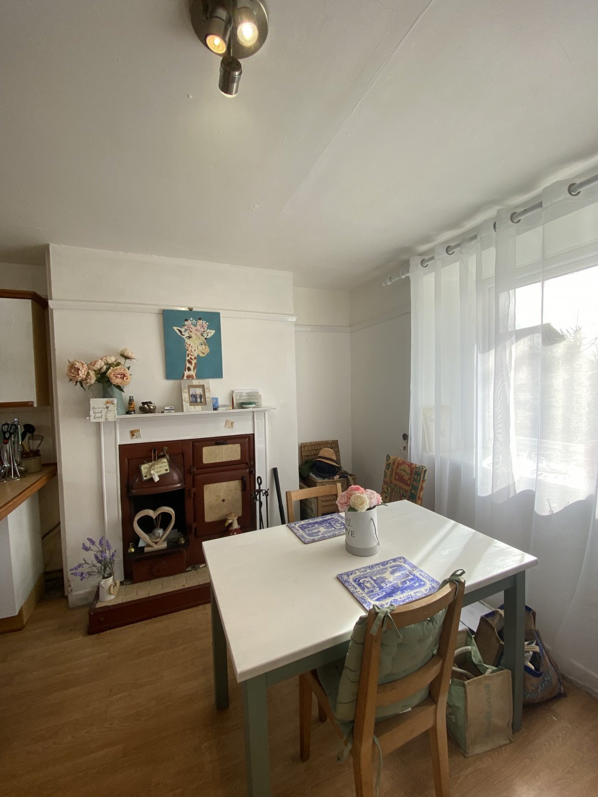 Spacious open plan kitchen and breakfast area. Fitted wall & base units, integrated electric oven & hob with extractor hood. Plumbing for dish washer & washing machine, light fittings, understair pantry/cupboard. Original feature fire place, Wooden back door leading to rear garden.
