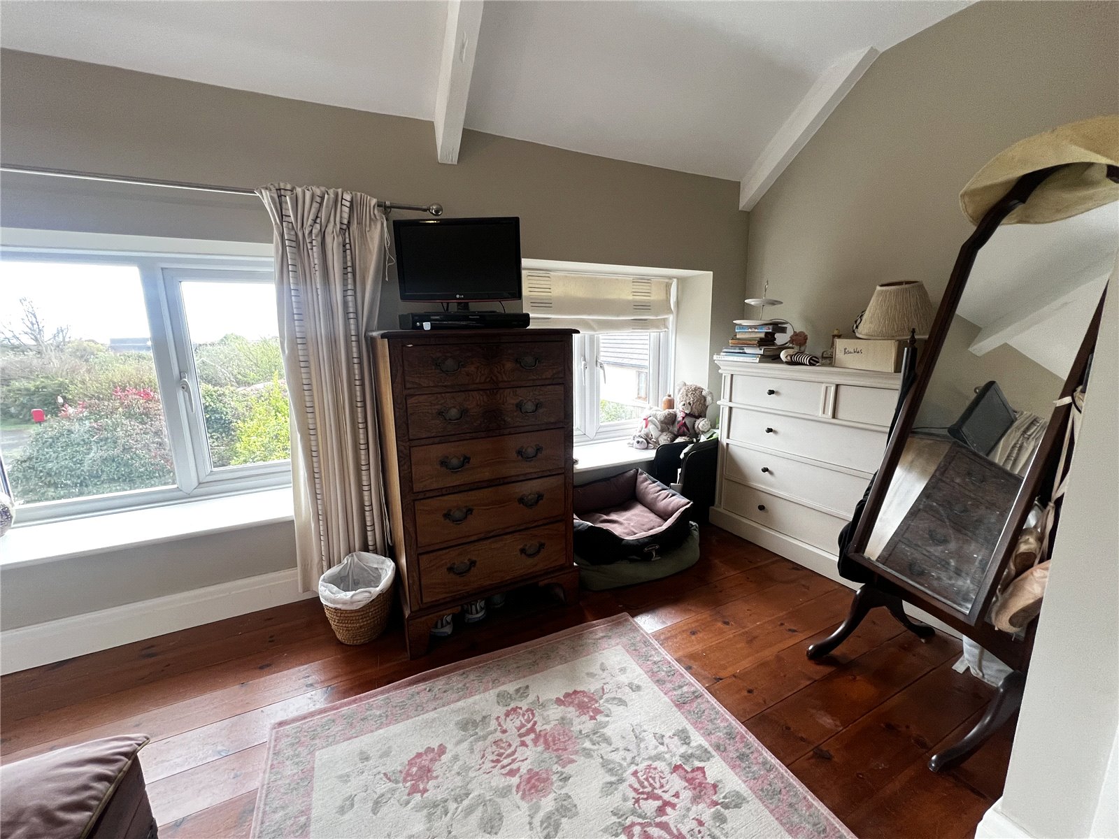 Second bedroom boasting wooden flooring, two double-glazed windows and a radiator.