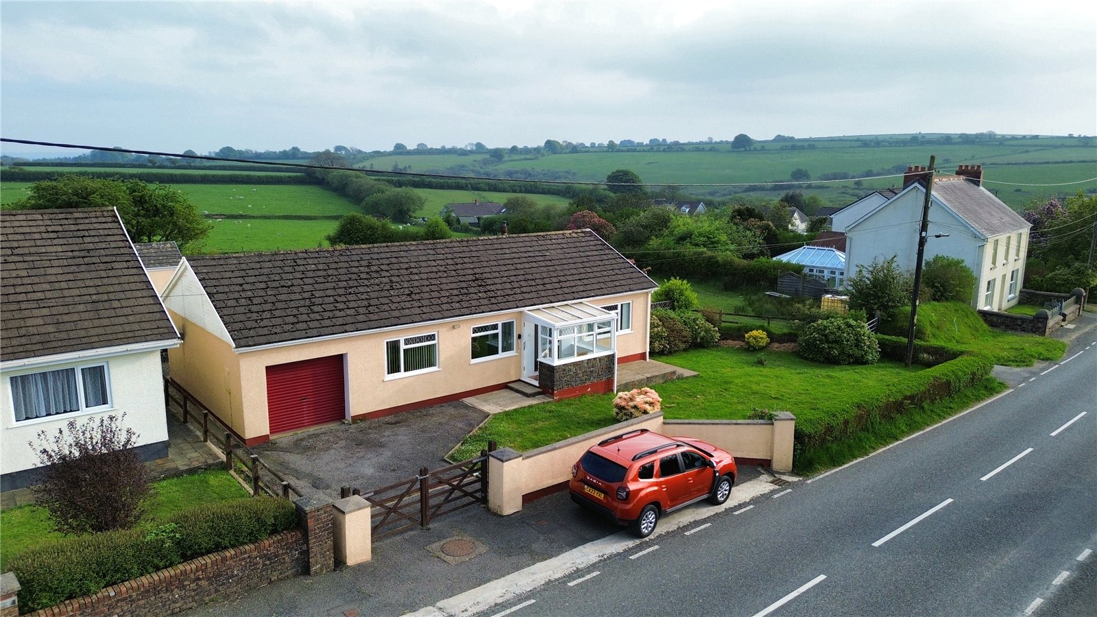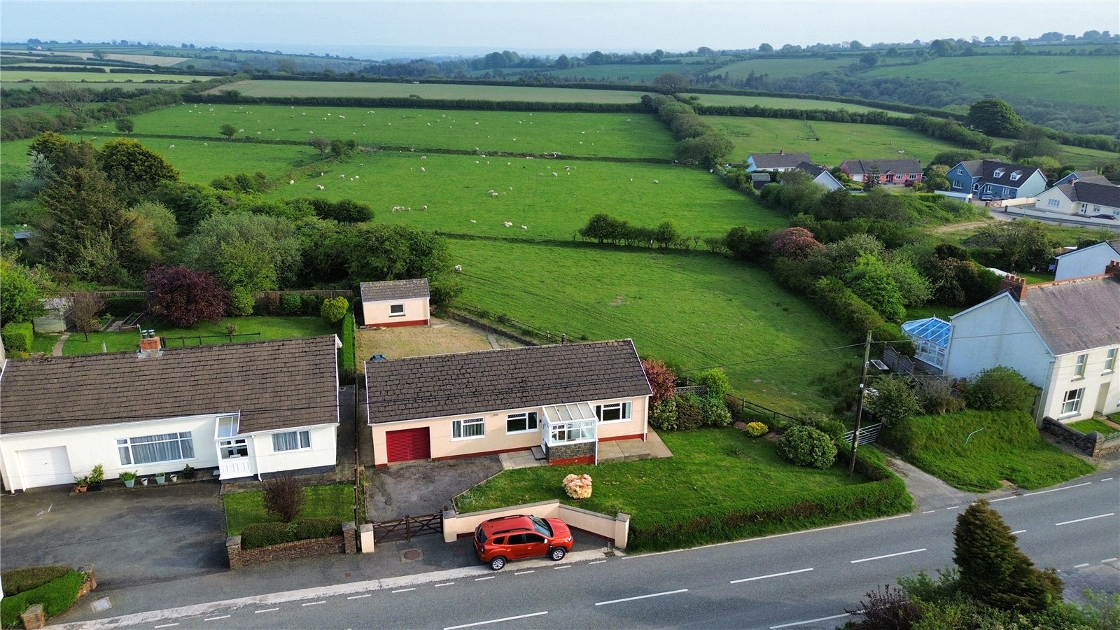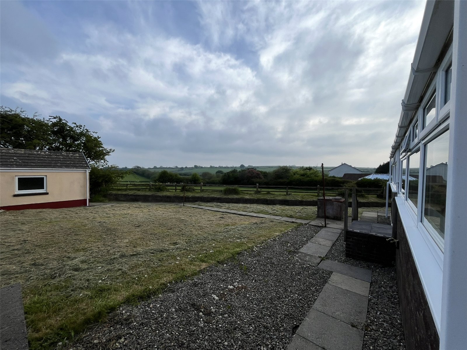Double entrance gates leading to tarmacadam driveway with ample parking. Garden laid to lawn at the fore with pedestrian side access to the sizeable rear garden, mainly laid to lawn, with exceptional countryside views to the rear and access to the external workshop.