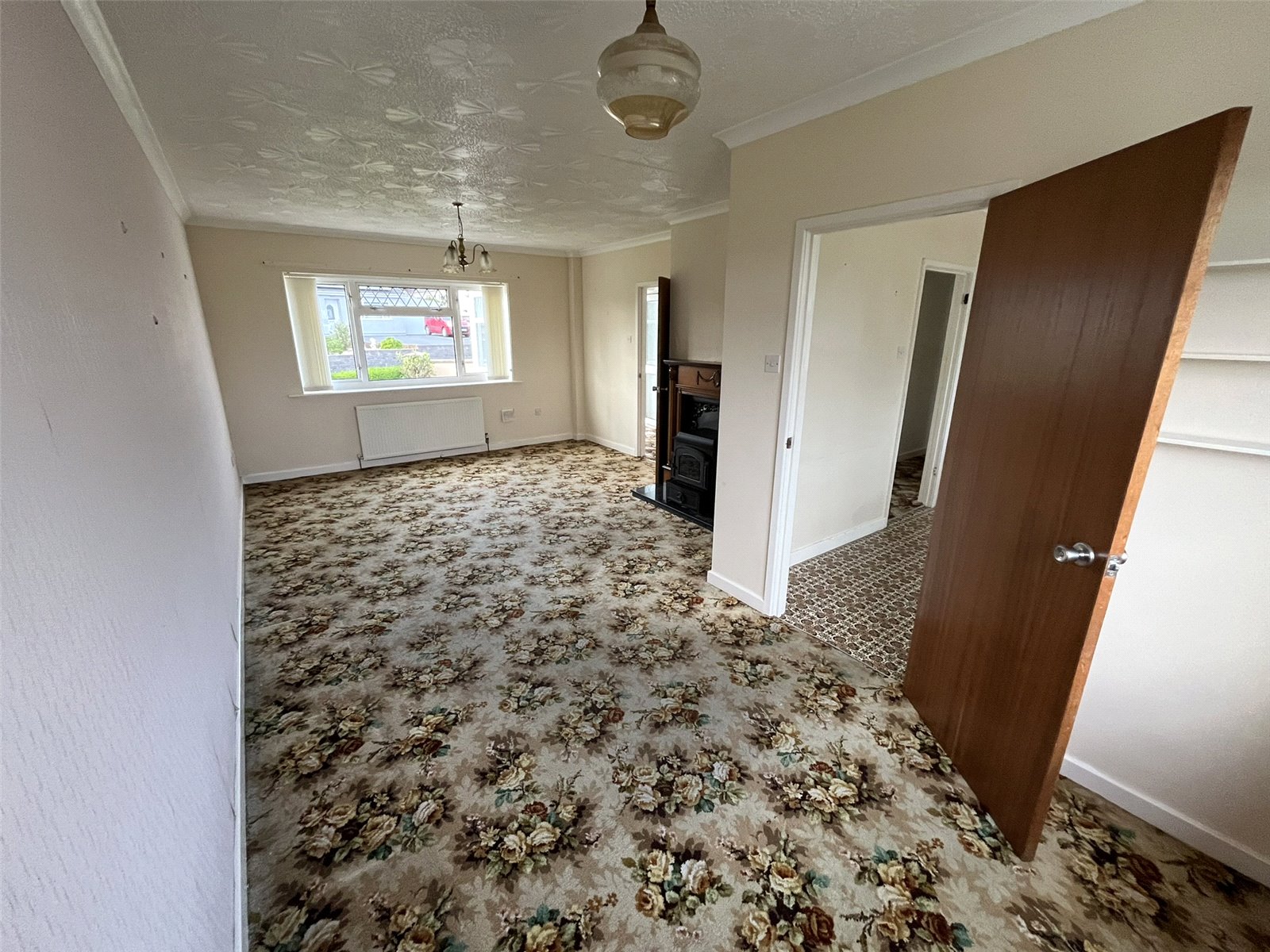 Family lounge space, with dual aspect uPVC double-glazed windows, radiator, lighting, carpeted flooring and oil-fired coal effect fireplace feature, with slate hearth and timber surround. Access to;