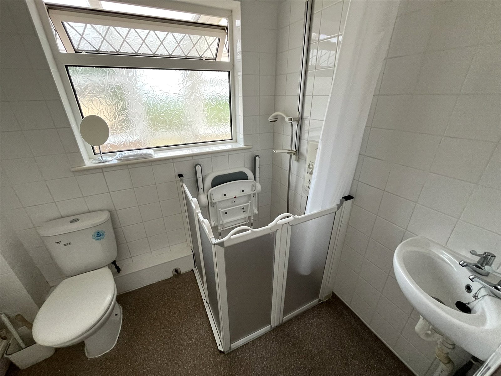 Family shower room, comprising of walk-in shower, w/c, hand wash basin, uPVC double-glazed window with obscure glass, radiator, tiled walls, extractor fan, lighting and shaver point.